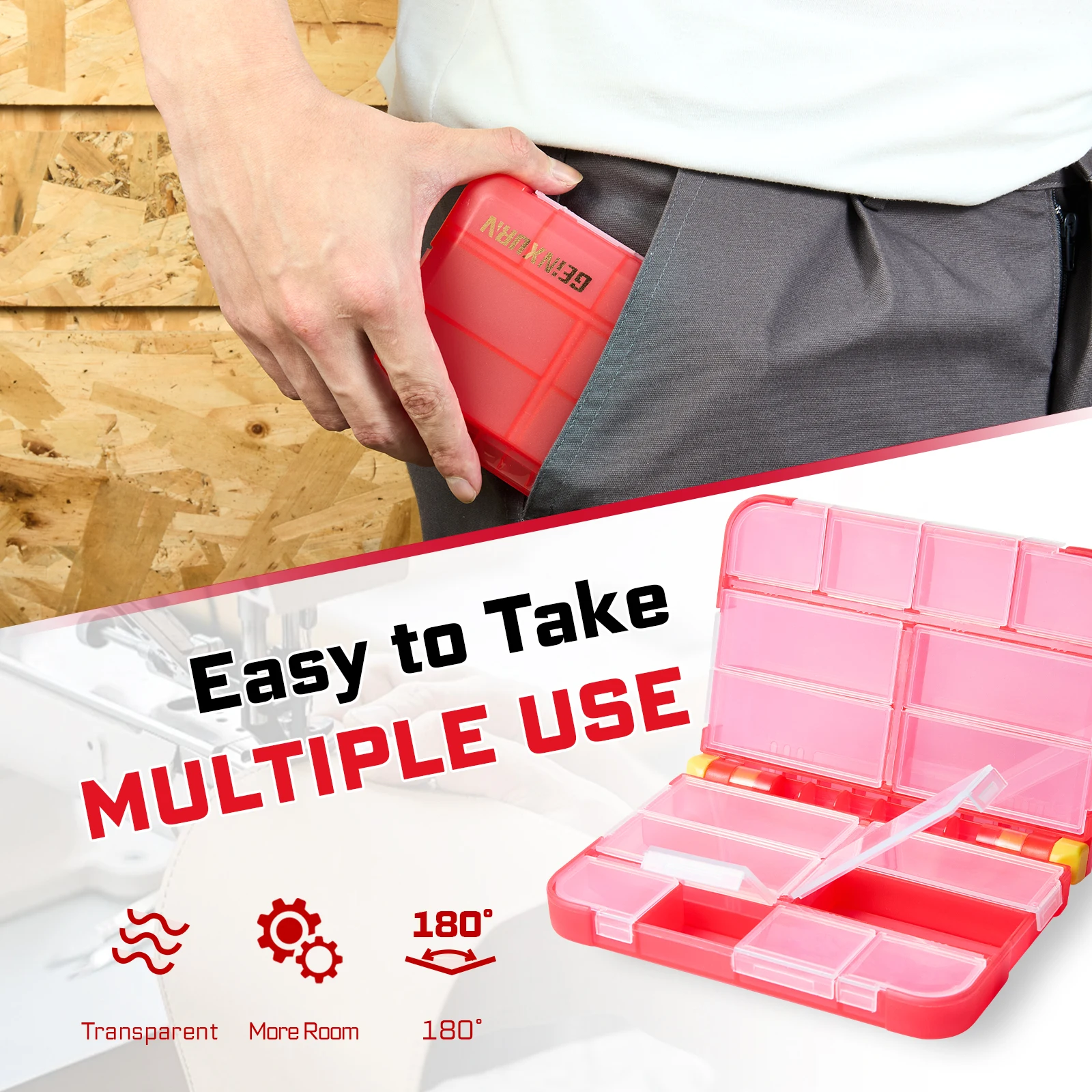 - Multiple internal compartments and free-form partitions enable customizable organization, helping you easily arrange small parts, tools, or accessories for quick access and visibility.