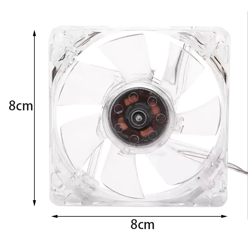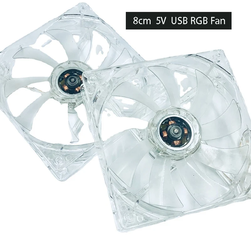 Experience a sleek, modern cooling solution with this transparent RGB USB fan designed for various applications. Its minimalist plastic casing offers a clear view of internal components, providing a clean and tech-inspired look. When powered, vibrant fixed RGB LEDs illuminate the fan in brilliant green, blue, and red hues, creating a striking visual effect that enhances any environment. Its lightweight design, weighing only 15 grams, makes it perfect for computer mainboards, pet cages, fish tanks, or hamster cages. With dimensions of 120mm x 120mm x 25mm or 80mm x 80mm x 25mm, it fits comfortably in tight spaces. Easy to install and energy-efficient, this fan combines functionality with style, making your cooling setup truly standout.