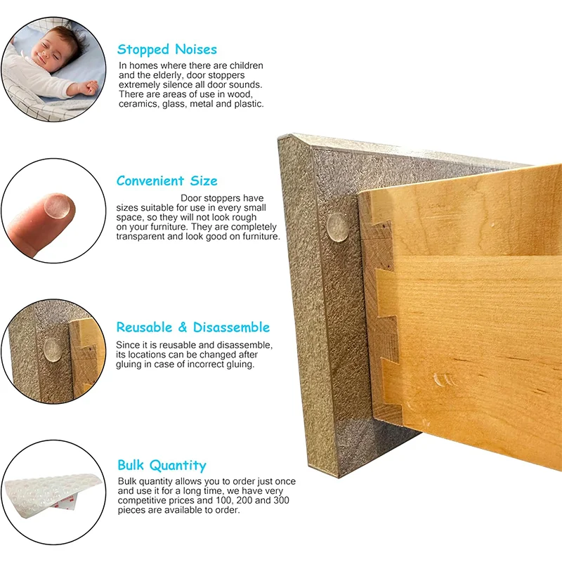 Transform your home with these transparent soft silicone non-slip door stoppers, designed specifically for furniture protection. Each pad measures 8mm in diameter and 2.5mm in height, allowing them to seamlessly blend into any décor. Made from high-quality clear rubber, they come with a robust self-adhesive backing for easy application on various surfaces such as glass, ceramic, plastic, and metal. By effectively absorbing impact forces, these pads reduce noise and prevent damage from friction, ensuring a quiet and harmonious living environment. With options of 100PCS to 500PCS, you can stock up according to your needs, making them versatile for cabinets, drawers, tabletops, and more.