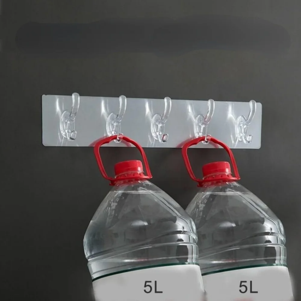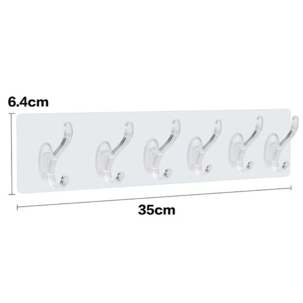 Experience seamless organization with this sleek, transparent six-hook wall panel that combines modern design with practical features. Crafted from durable, high-quality plastic in a clear finish, it effortlessly blends into any interior decor. Its elongated, minimalist shape includes six evenly spaced hooks with subtle upward bends, ensuring your items stay securely in place. Easy to install without tools or damage, this punch-free design offers a stability that supports up to 30 kg, making it perfect for bathrooms, kitchens, or entryways. Reusable and tear-off without leaving marks, it provides versatile hanging options. The lightweight, glossy appearance adds a touch of sophistication, transforming your space into a tidy, stylish area while maintaining a clean and airy aesthetic.