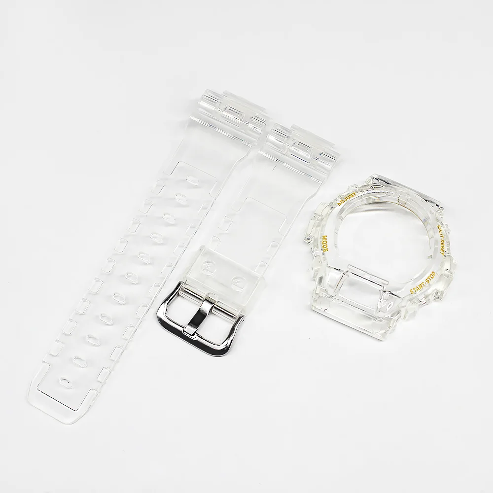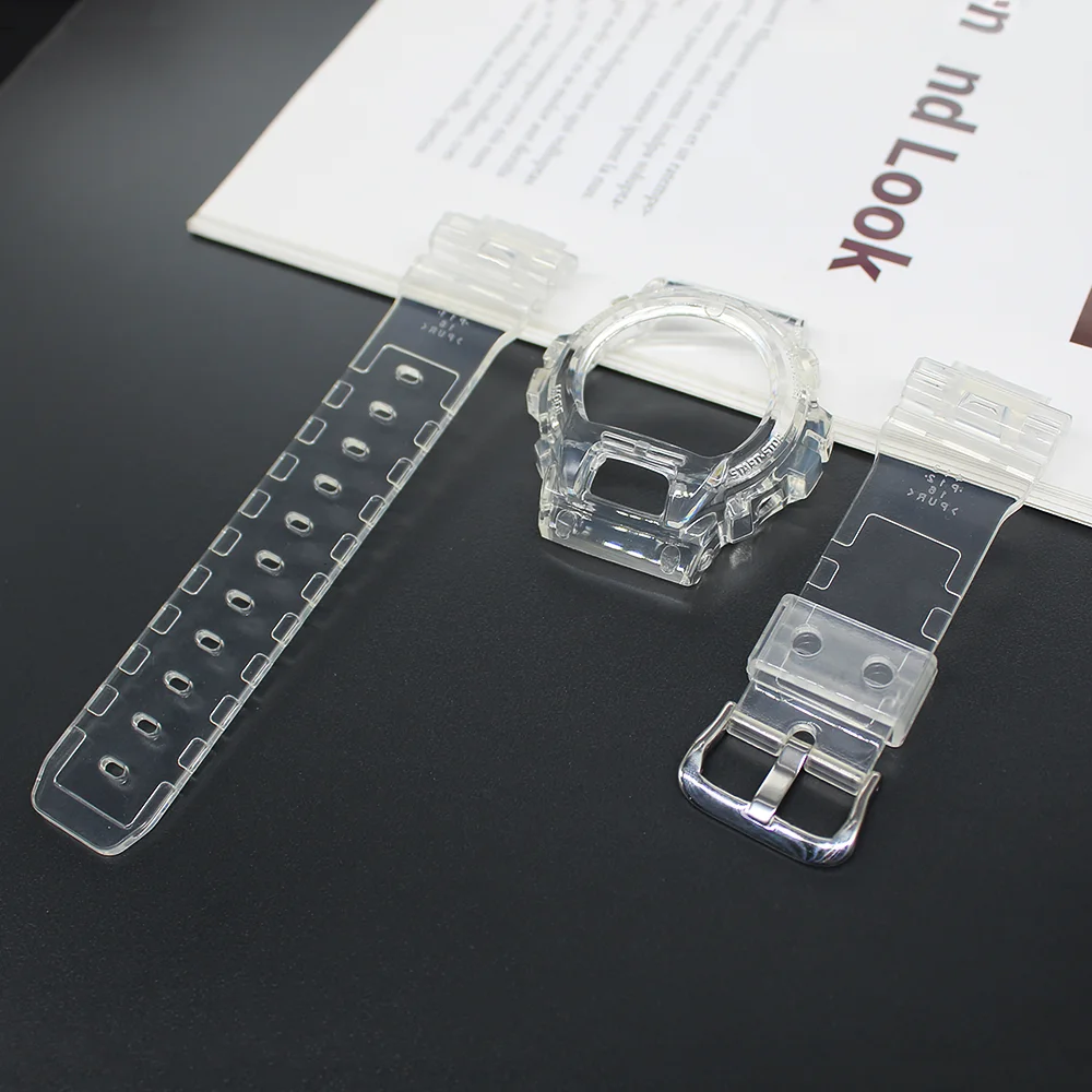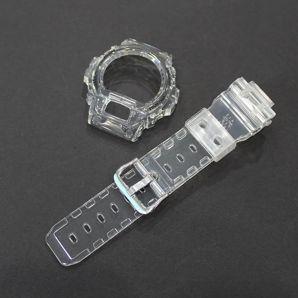 Enhance your style and comfort with this sleek, transparent watchband designed specifically for your DW-6900, 6600, or 6930 model. Crafted from high-quality TPU material, this strap offers exceptional durability, waterproof protection, and lightweight comfort. Its minimalist, clear design allows your watch face to shine through, making it perfect for sporty, casual, or everyday wear. The adjustable multiple holes ensure a perfect fit for every wrist size, while the metallic buckle adds a subtle touch of shine. The integrated transparent case surrounds your watch face with slightly raised edges for added protection. Elevate your wrist game with this modern, functional accessory, and experience the ideal combination of style and practicality.