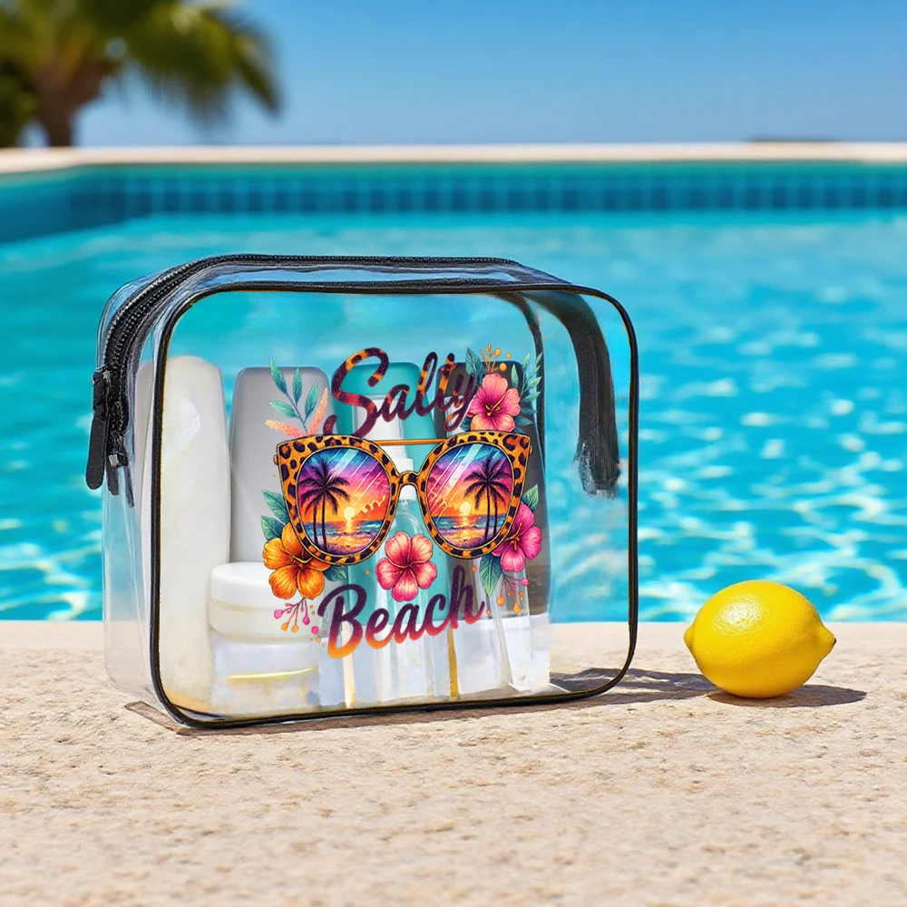 Enjoy the perfect summer accessory with this clear, waterproof PVC beach tote bag, available in Large, Medium, and Small sizes. Its sleek, transparent design offers a modern, minimalist look, making it ideal for travel, weekends, or everyday use as a makeup or toiletry bag. Crafted without chemical additives, this stylish bag combines practicality with durability, featuring a secure black zipper for easy access and visibility of contents inside. Its versatile size options allow you to carry cosmetics, toiletries, or personal items effortlessly, ensuring you stay organized while embracing a fresh, seaside-inspired aesthetic perfect for any sunny outing or relaxing getaway.