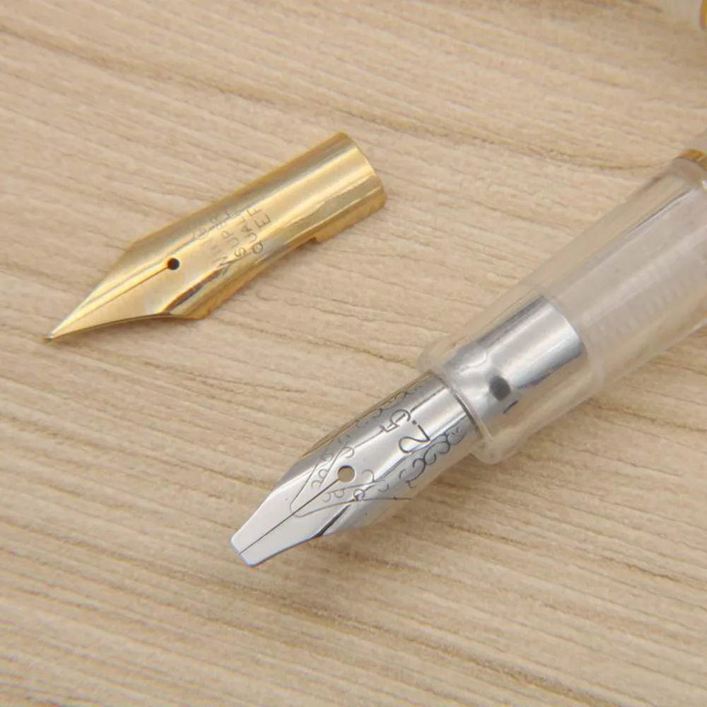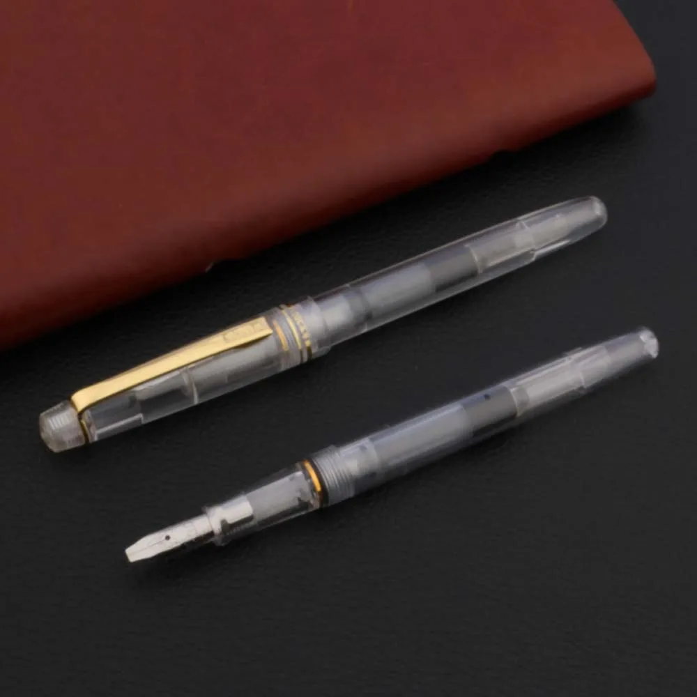 Experience the perfect blend of modern design and precise craftsmanship with this transparent white fountain pen. Its sleek, cylindrical body crafted from clear plastic allows you to admire the internal mechanisms, adding a touch of sophistication to your writing routine. Designed for artists, calligraphers, and enthusiasts alike, this pen offers a smooth, consistent ink flow thanks to its stainless steel nib and 0.38mm tip. The metallic nib, accented with a polished silver finish and bold red size markings, ensures fine, accurate lines ideal for detailed work. The gold-colored clip not only provides elegance but also makes this pen easy to attach to notebooks or pockets. Elevate your writing and creativity today with this refined instrument.