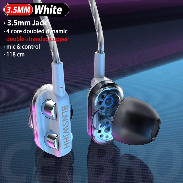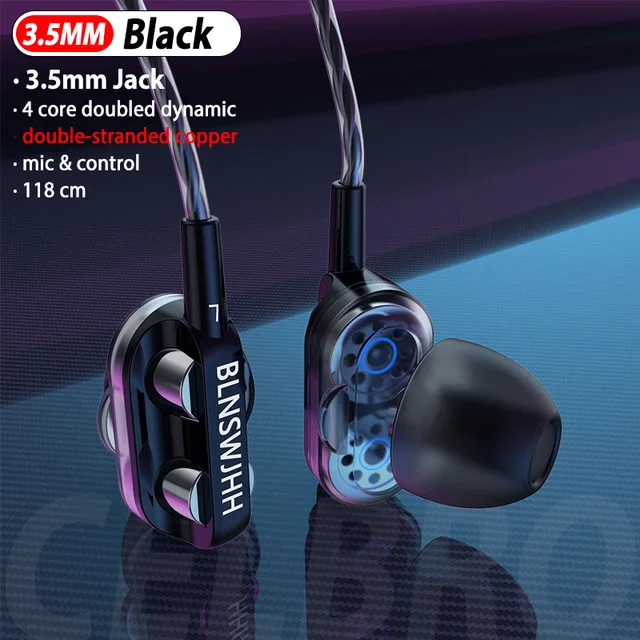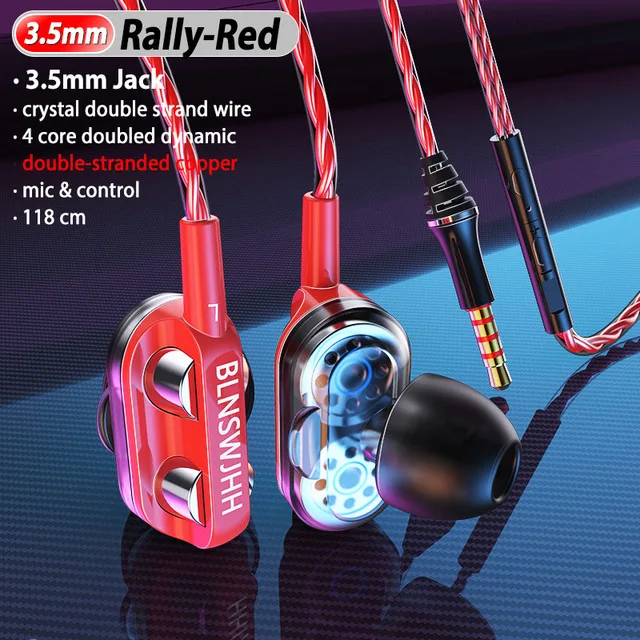 Experience immersive sound with these wired in-ear earphones featuring a 3.5mm jack and a 1.2-meter cable. Equipped with dual 10mm dynamic drivers, they deliver a frequency response of 20Hz to 22kHz and impedance of 32 ohms for rich, high-quality audio. Active noise-cancellation and a built-in microphone ensure clear calls and an enhanced listening experience. Designed for sports, they feature semi-open earbuds available in black, blue, red, or white, each with single or double speaker options. Control buttons allow easy volume adjustment, making them perfect for mobile use. Their sleek, modern design combines style with durability, seamlessly fitting into your active lifestyle.