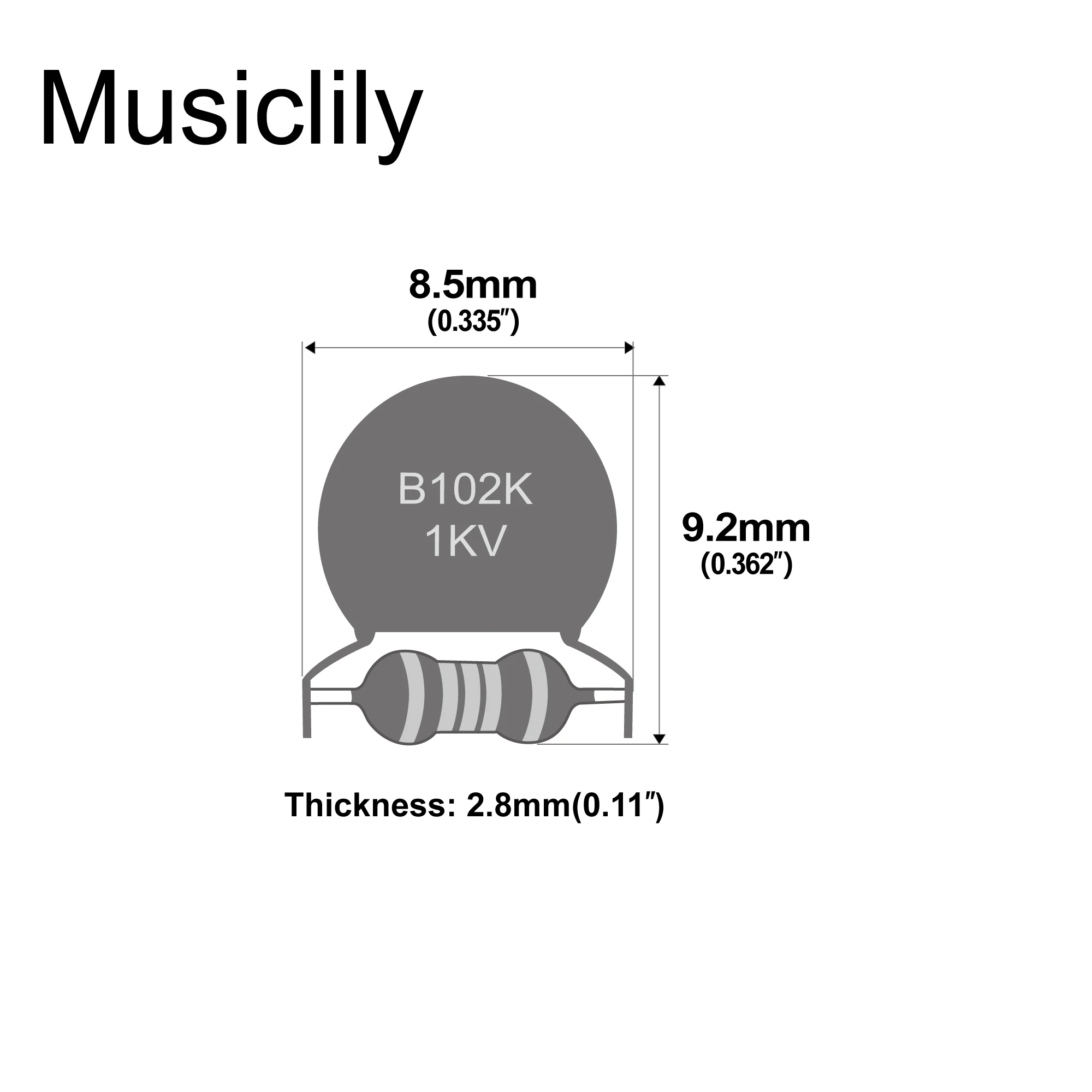 - This high-quality ceramic capacitor measures 9.2 x 8.5 x 2.8 mm with a capacitance of 0.001uF rated at 1KV and 10% tolerance, ideal for stable treble control during volume adjustments.