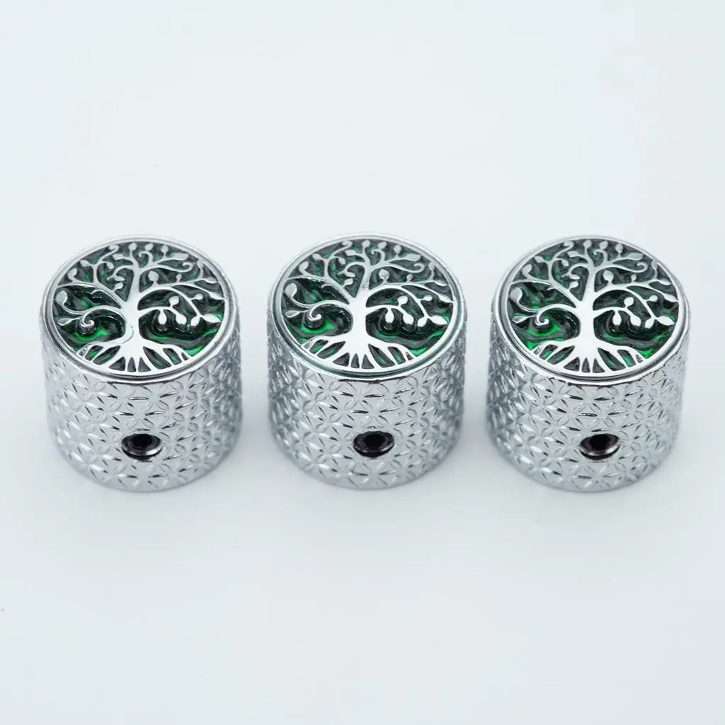 Transform your guitar or bass with this elegant and durable Tree of Life knob. Whether you're customizing your instrument or upgrading its look, this knob offers the perfect combination of aesthetic charm and precise functionality. Its intricate cutout design and rich color options allow you to express your unique style while enjoying reliable performance. Easy to install, it ensures your instrument remains both visually stunning and fully operational. Don’t miss the chance to add this distinctive touch to your musical setup—order now and bring a new level of artistry to your instrument!