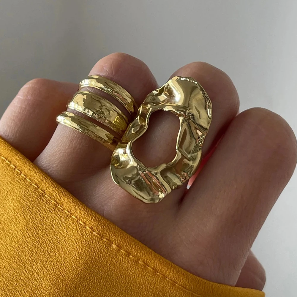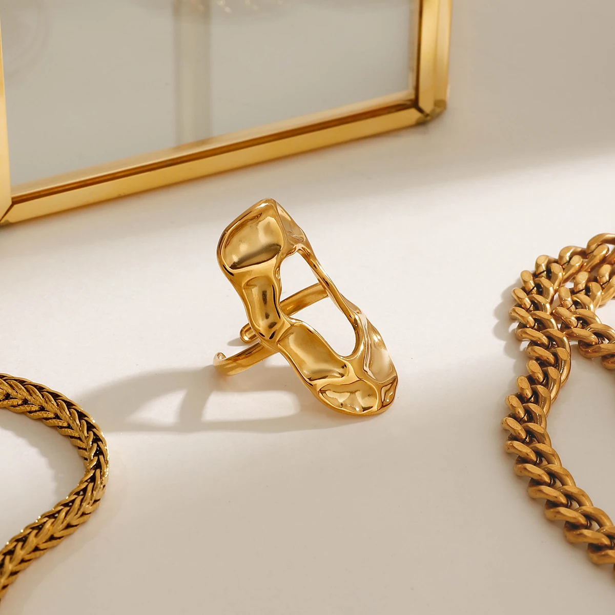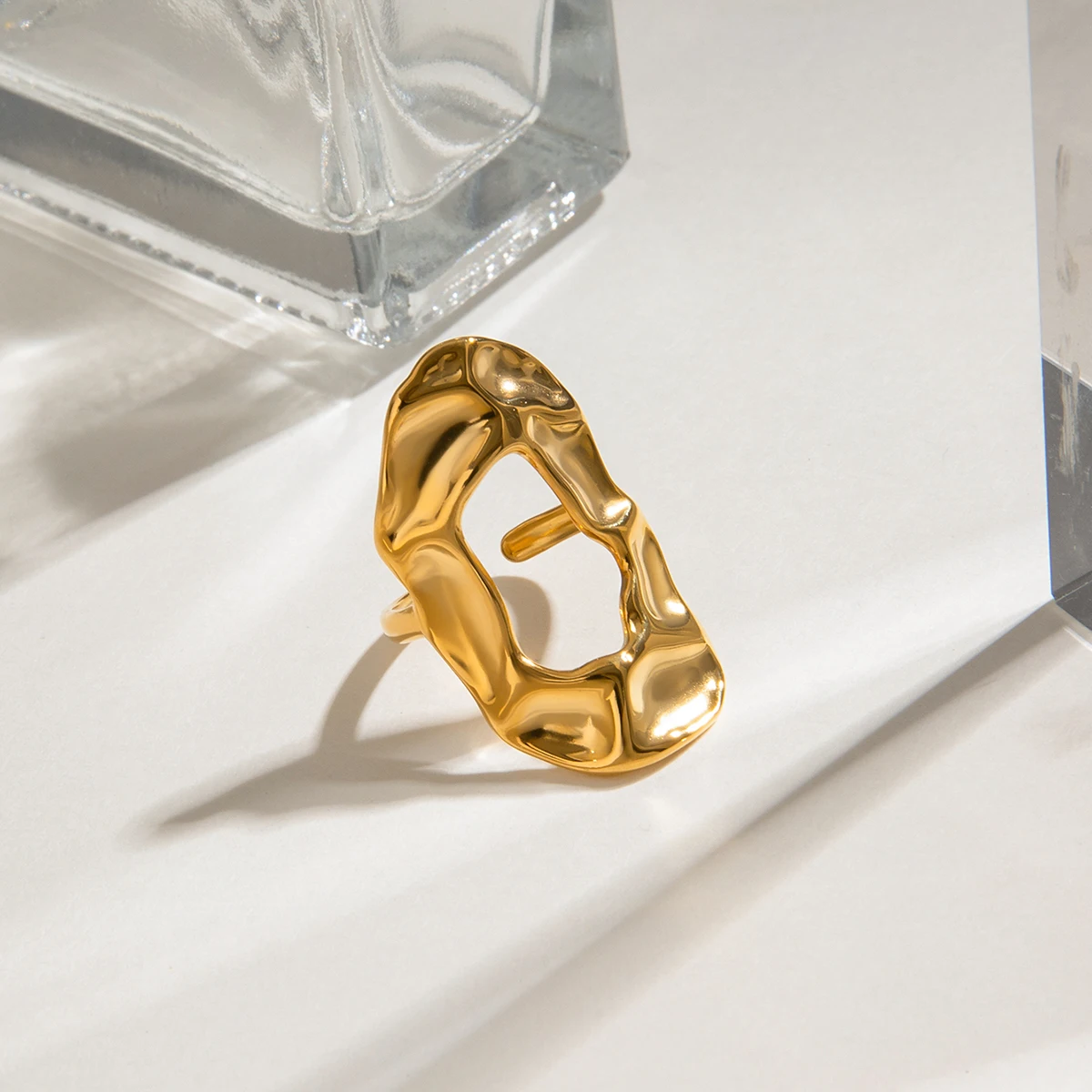 Enhance your jewelry collection with this stunning women’s stackable hollow ring crafted from stainless steel with an 18K PVD gold plating, offering long-lasting color, anti-scratch resistance, and waterproof durability. Featuring an 18mm diameter, 2mm surface width, and a modern skeleton design, it combines bold, contemporary style with a lightweight feel of approximately 15 grams. Perfect for parties and special occasions, this trendy ring is free of nickel, lead, and cadmium, ensuring a comfortable and luxurious accessory. Its versatile, statement-making look adds a touch of sophistication to any outfit, making it an essential piece for fashion-forward individuals.