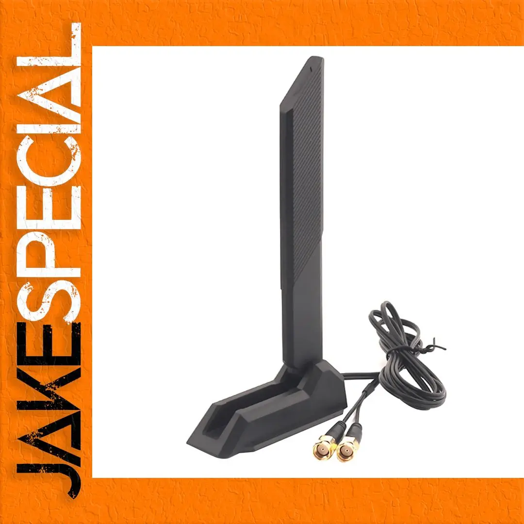 Enhance your WiFi experience with this external tri-band WiFi antenna, featuring a frequency range of 2.4GHz (2400-2500MHz), 5.8GHz (5150-5850MHz), and 6GHz (5900-7125MHz). It supports advanced standards including 802.11 ax, b, a, ac, g, WiFi 6, and WiFi 6e, delivering a robust gain of 12dBi. Equipped with RP-SMA Male connectors and dual 3.9 feet extension cables, this omni-directional antenna is designed for easy installation and optimal signal reception. With a VSWR of less than 1.8 and an impedance of 50 ohms, it operates efficiently across a wide temperature range of -40°C to +85°C, making it perfect for wireless network routers, gaming motherboards, and PC desktops.