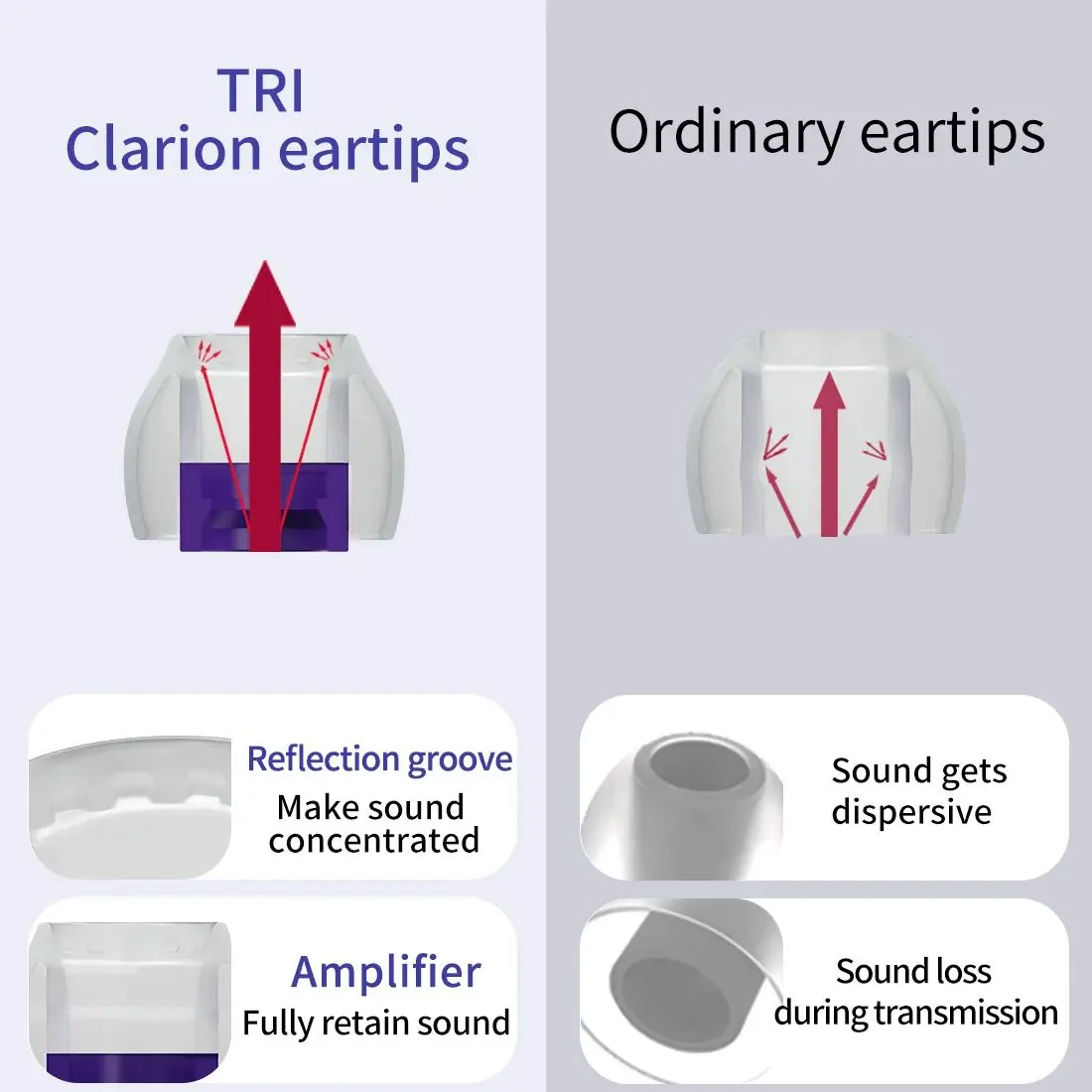 Keys features of this TRI Clarion Silicone Eartips