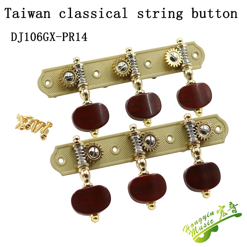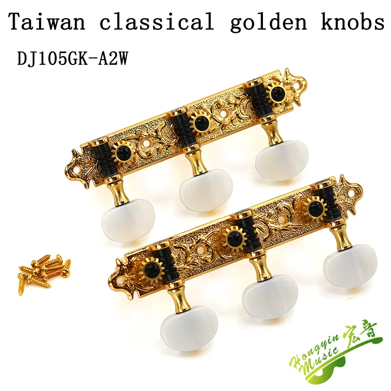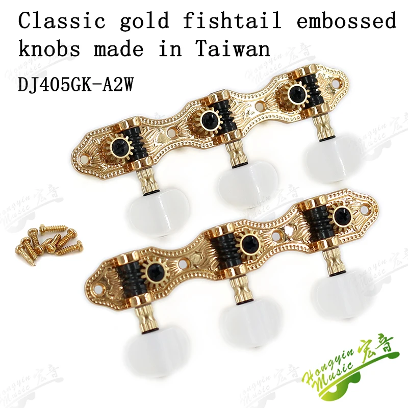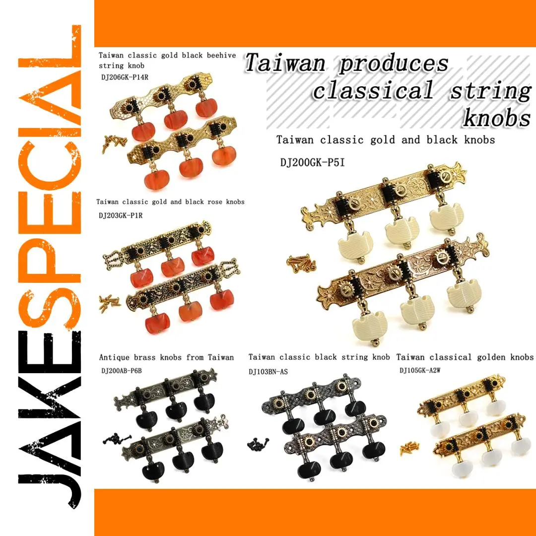 Experience the beauty and craftsmanship of this this classical guitar string button with a tri-integrated knob, meticulously crafted in Taiwan. Designed for serious musicians and enthusiasts, it combines vintage charm with modern precision. The metal construction ensures durability and long-lasting performance, while the ornate engraved patterns on the bases add an elegant touch. Available in a variety of colors, including glossy gold, antique brass, matte black, ivory, and coral, these tuning pegs elevate your guitar's aesthetic appeal. The open-gear machine head with semi-closed or fully closed options provides smooth, accurate tuning. Whether upgrading or replacing, this product guarantees a refined, professional sound with a timeless style.