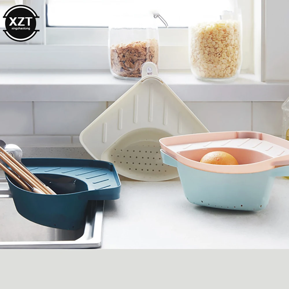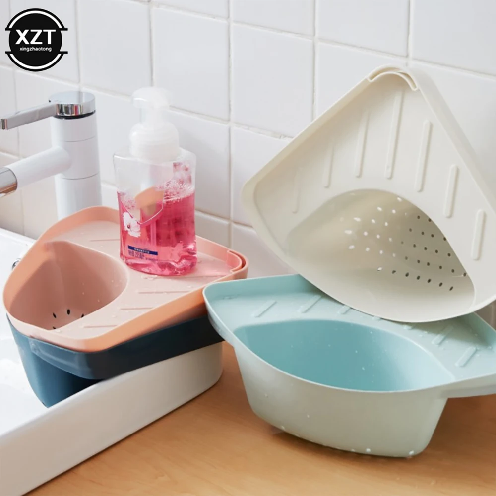 Enhance your sink organization with this durable, waterproof triangular storage rack available in white, sky blue, blue, and pink. Crafted from plastic with a hollow, textured design for quick drainage and strong bearing capacity, it features a convenient suction cup fixing system for easy, drill-free installation. Its minimalist, modern shape efficiently utilizes limited space, keeping your essential kitchen or bathroom items neatly arranged and within reach. Removable for effortless cleaning, this eco-friendly colander and strainer is perfect for wet environments, ensuring a clean, clutter-free area while adding a touch of contemporary style to your space.