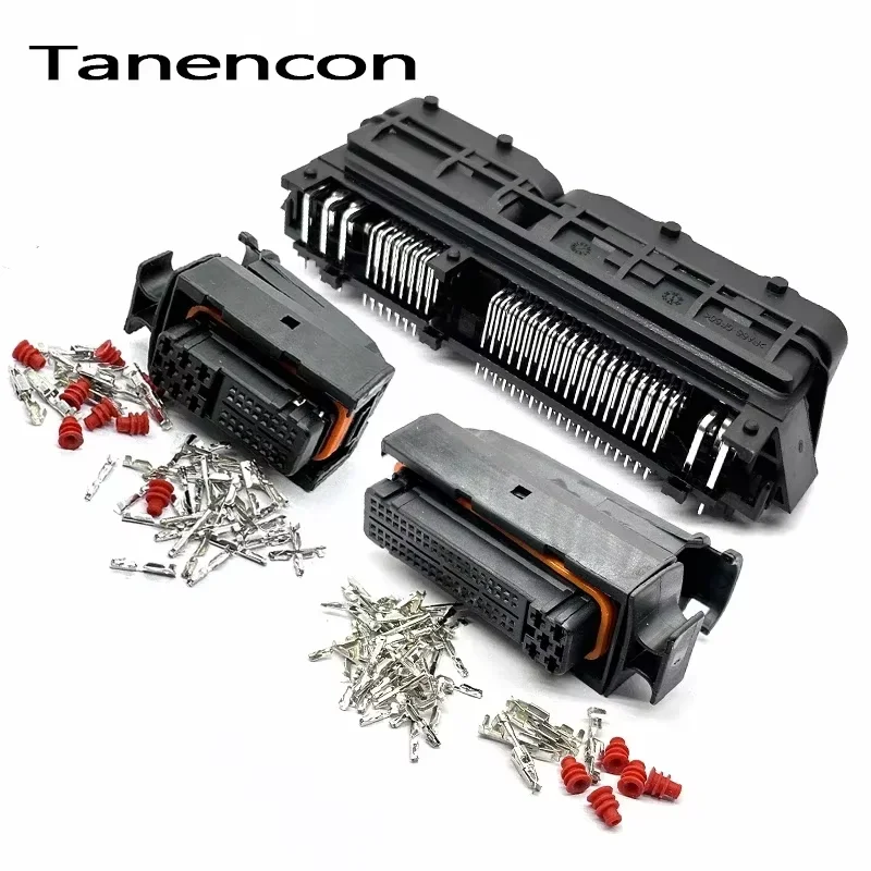 This trip computer connector is a vital tool for any automotive enthusiast looking to modify their ECU systems. Available in configurations of 40 Pin, 81 Pin, and 121 Pin, this connector ensures a reliable fit for various applications. Its robust black plastic design not only provides durability but also features an orange sealing component that adds a unique visual flair while enhancing wiring integrity. With metal pins consistently aligned in two rows, it promotes efficient electrical connectivity. Suited for both 0.5 and 1.25 automotive special wires, this connector effectively meets different wiring needs, making it an essential accessory for automotive modifications.