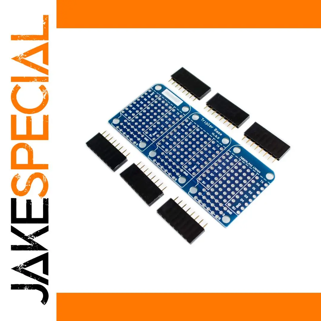 Imagine enhancing your electronics projects with this sleek, blue triple shield designed specifically for the WeMos D1 Mini. Crafted from durable fiberglass epoxy (FR4), the PCB features three evenly spaced sections, each with a precise grid of through-holes ready for soldering components or jumper wires. Clear white silkscreen markings indicate connection points such as D0 to D8, D9 to D14, GND, VCC, and TX/RX communication interfaces, making assembly intuitive. The shield includes six gold-plated pin headers to ensure reliable connections. Its compact, organized layout provides an excellent foundation for voltage regulation, power management, or expanding your microcontroller’s capabilities. Elevate your DIY electronics with this professional-grade PCB and enjoy seamless integration into your projects.