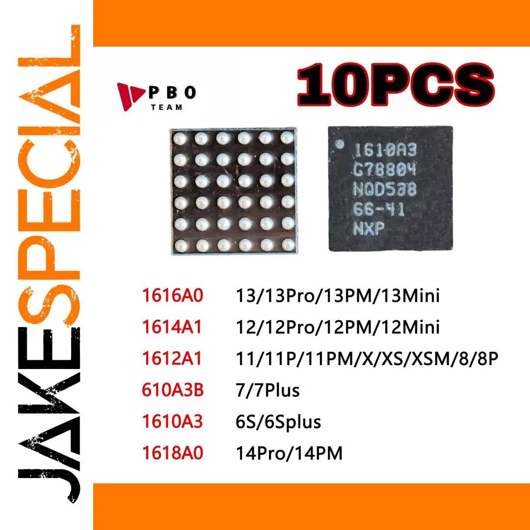 - Includes 10 high-quality ICs: models 1612A1, 1616A0, 610A3B, 1614A1, 1610A3, and 1618A0, all compatible with various iPhone models for versatile repair or customization.