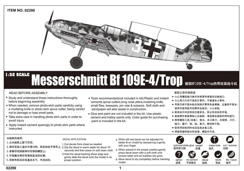 This Trumpeter 02290 Messerschmitt BF109 E-4/Trop Model