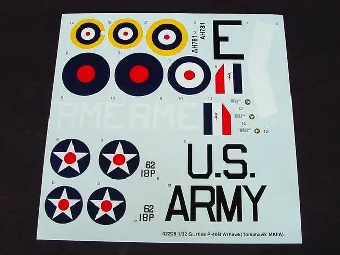- Precise decal options featuring the Curtiss “Tomahawk” MKIIA of the 26th Squadron RAF, Great Britain, June-July 1941.