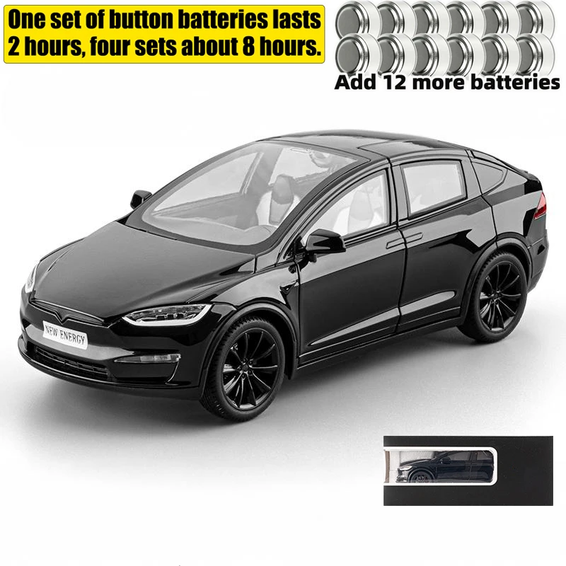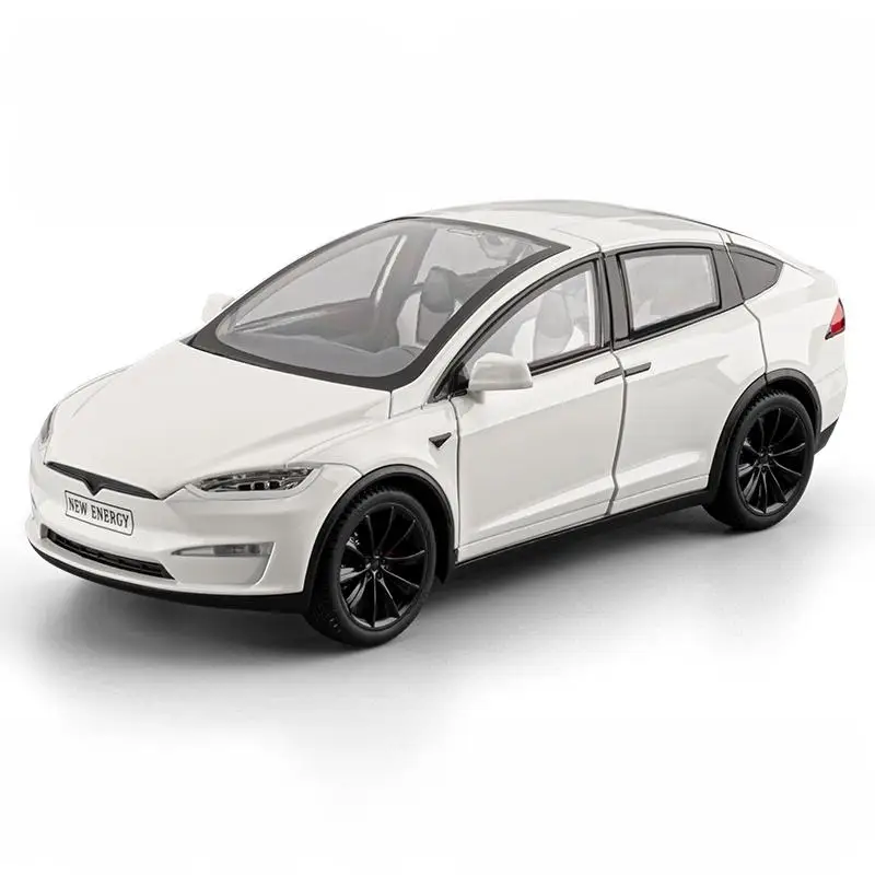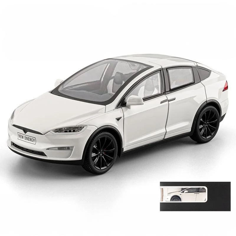 This exquisite 1:24 scale diecast model of the Model X is finished in a glossy black that radiates sophistication and modernity. The streamlined design features smooth curves and a well-defined silhouette that closely mirrors the original vehicle. The distinctive falcon-wing doors showcase the meticulously crafted interior while highlighting the detailed black alloy wheels. With sound and light functionalities powered by a button battery, this model offers an interactive experience. Additionally, the intricately designed rear lights enhance the aesthetic, while the “NEW ENERGY” license plate establishes its electric vehicle identity, making this a delightful addition for any automotive enthusiast or collector.