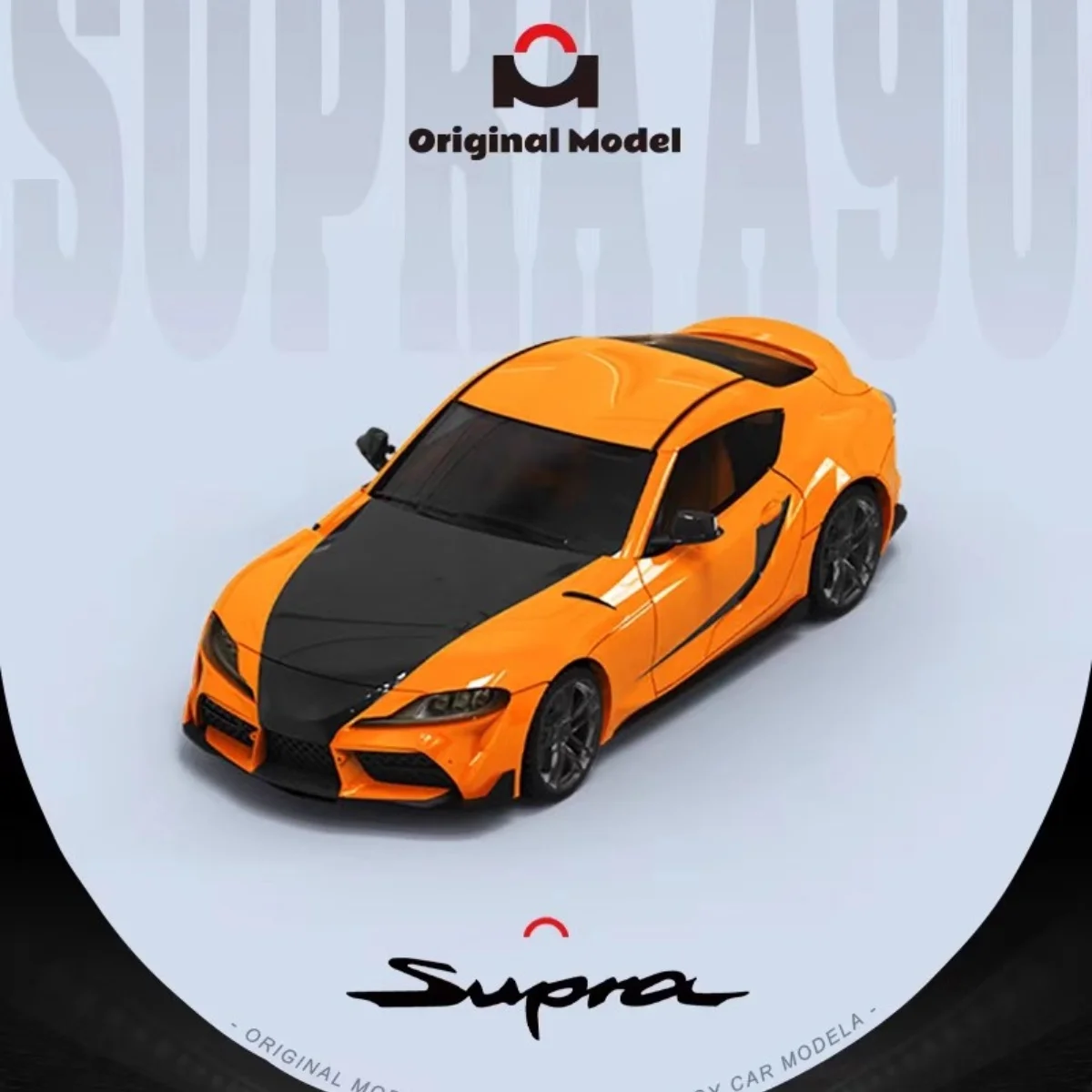 Experience the thrill of owning a meticulously crafted diecast model of the iconic Toyota Supra. This 1:64 scale replica showcases a vivid bright orange body, accented by a sleek black hood and striking black racing stripes that run down the center. Constructed from durable metal, this model offers both weight and detail, perfectly capturing the essence of the real car. You'll admire its intricately designed front grille, realistic headlights, and striking black-rimmed front wheels, enhancing its sporty profile. Presented elegantly on a black base, this piece not only elevates your collection but also ignites your passion for stunning automotive design.