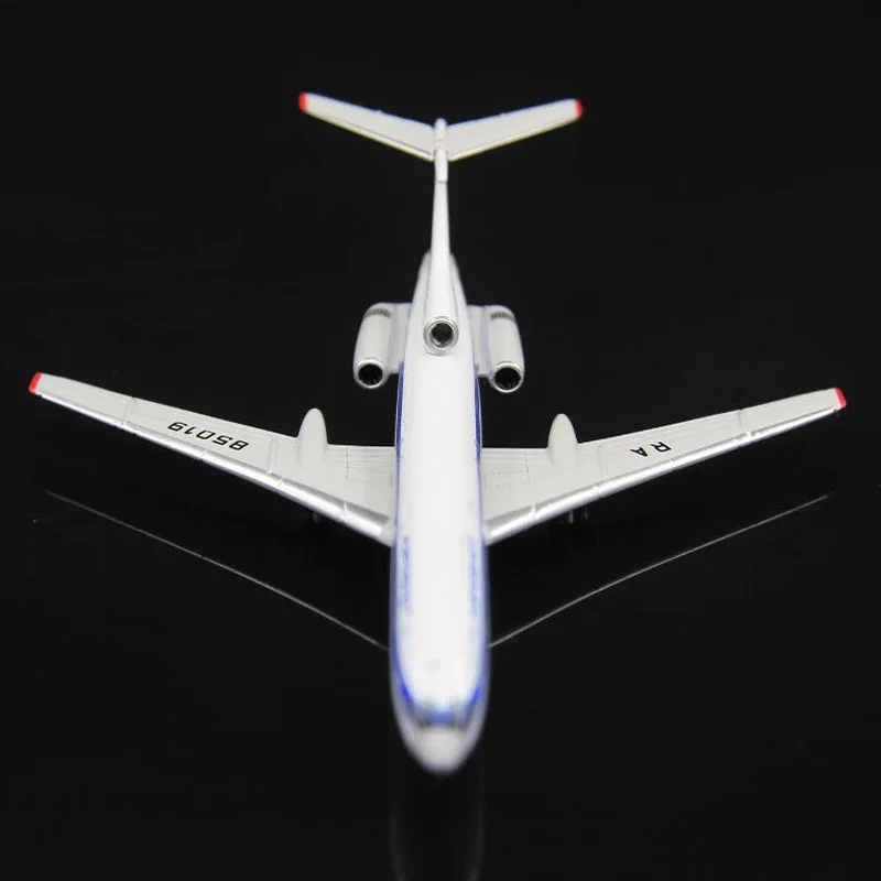 A finely detailed diecast model of a Russian TU-154S aircraft, measuring 11.97 cm in length with a wingspan of 9.39 cm, crafted from alloy in a sleek “A” color. This 1:400 scale static collector’s piece features accurate fuselage proportions, etched windows and doors, a slightly tilted tail fin, and wings with a gentle dihedral angle, offering a realistic aerodynamic silhouette. Its smooth finish, sharp lines, and precise markings make it an elegant display for aviation enthusiasts. Designed for collection, decoration, or gifting, it is fragile and suitable for ages 14 and above, requiring careful handling.