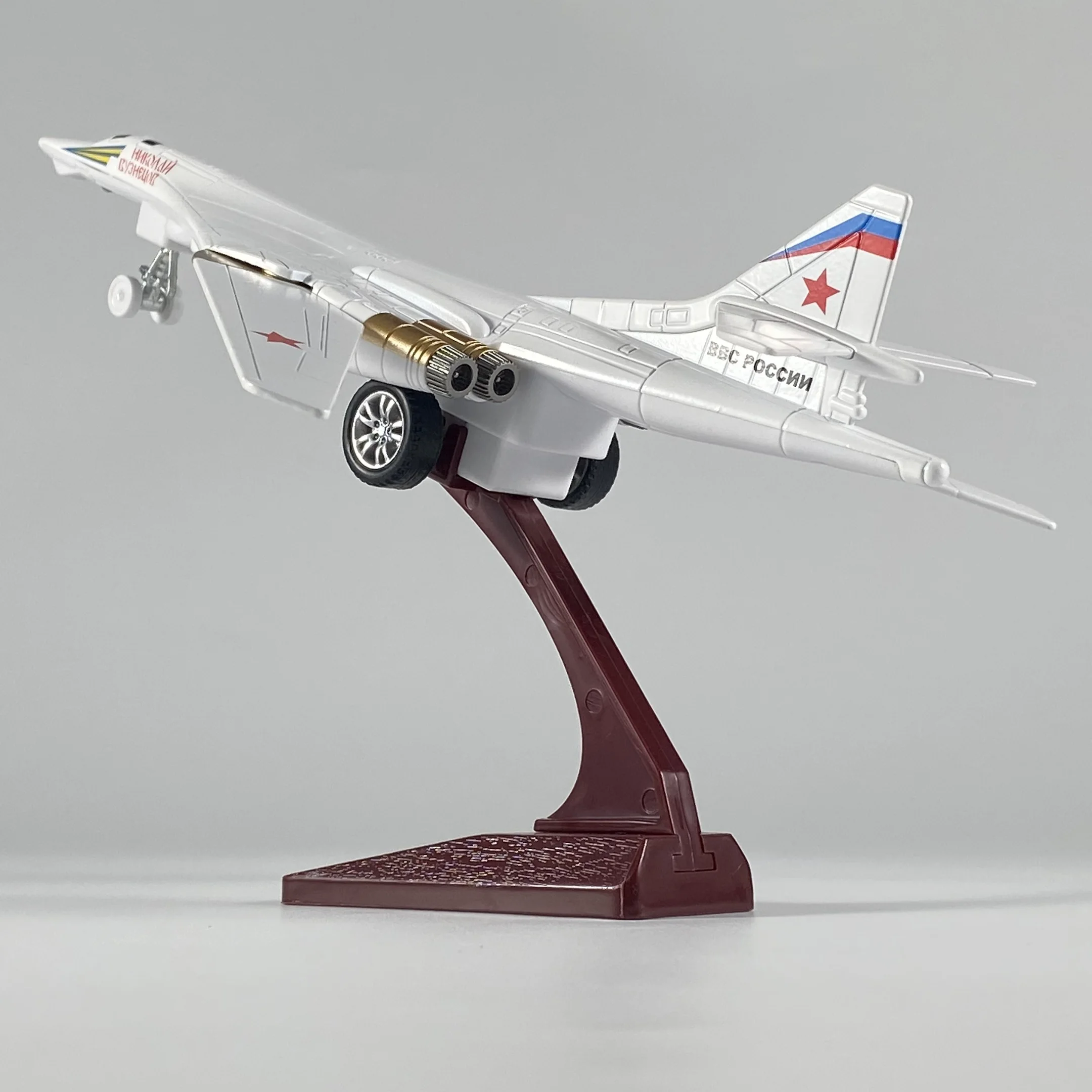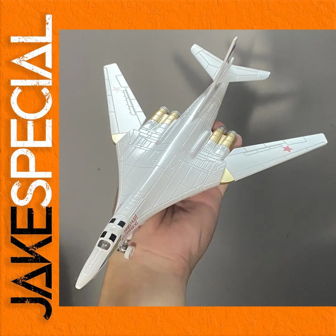 Experience the striking realism of the 1:200 scale Tu-160 bomber model, crafted from durable diecast metal with detailed engraved panel lines, rivets, and surface textures that mimic the aircraft’s aerodynamic design. Featuring gold-colored engine nacelles on the upper wings, red military insignia, and a darkened cockpit for enhanced authenticity, this sleek model offers interactive sound and light effects powered by batteries, along with a pull-back mechanism for dynamic movement. Proportionally accurate for impressive display, it arrives in either a White Box or Grey Box packaging, making it an exceptional addition to any aviation collection or a thoughtful gift for enthusiasts.