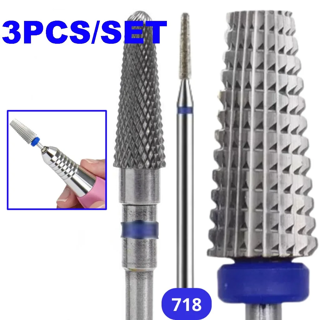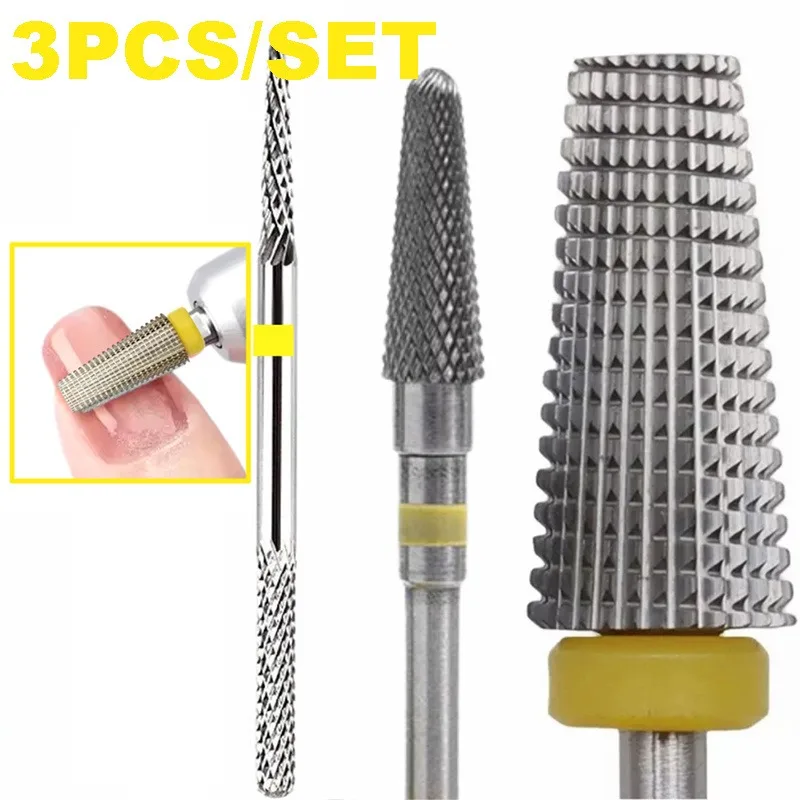 Experience precision and durability with this professional-grade nail drill bits set, designed for expert cuticle removal. Crafted from tungsten carbide with a diamond coating, these bits ensure smooth, effective performance during manicures and pedicures. Available in vibrant colors such as blue and yellow, with sets of 1 or 3 pieces, they allow you to customize your toolkit for different needs. The textured surfaces feature grid-like, diamond-coated patterns that provide abrasive power for precise work. Their sleek, industrial design combines metallic gray finishes with color-coded bands for easy identification of grit levels or purposes. Compatible with most electric nail drills, these bits are perfect for professionals seeking efficiency and reliability in their craft.