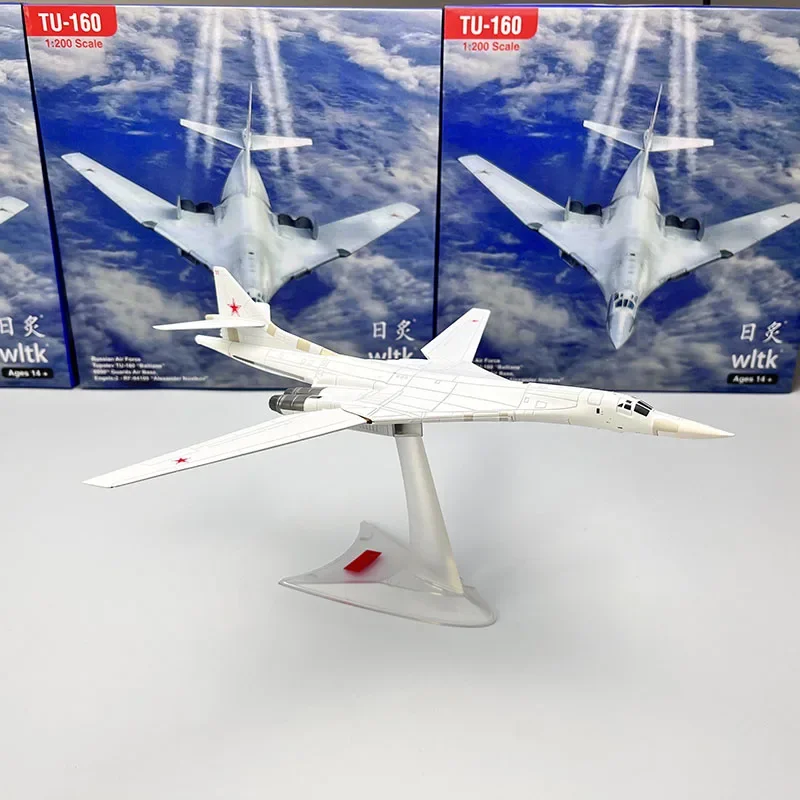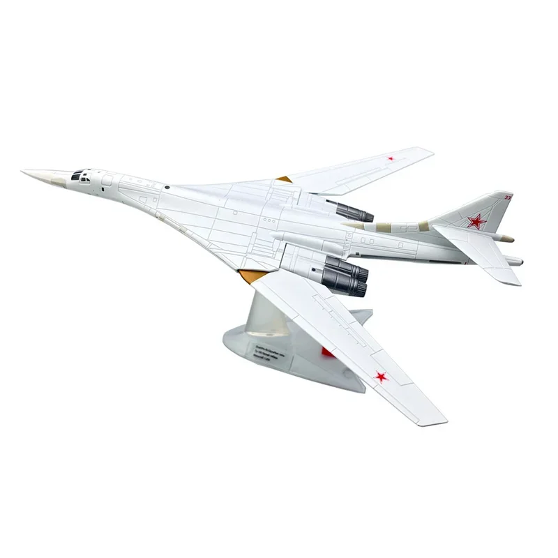 Immerse yourself in the striking realism of this diecast alloy Tupolev TU-160 model aircraft. Measuring approximately 27 cm in length and 22 cm across, this 1/200 scale replica captures the sleek, aerodynamic silhouette of the iconic “White Swan.” Its predominantly white finish features precise panel lines and structural details, such as twin vertical stabilizers, delta wings, and detailed engines—highlighting craftsmanship and realism. Perfect for home, office, or bar decor, this collectible showcases the aircraft’s sharp nose and streamlined design. Its metallic construction offers durability and a premium look, making it an impressive display piece. Note, this model is not a toy and cannot fly, designed solely for collector display purposes.