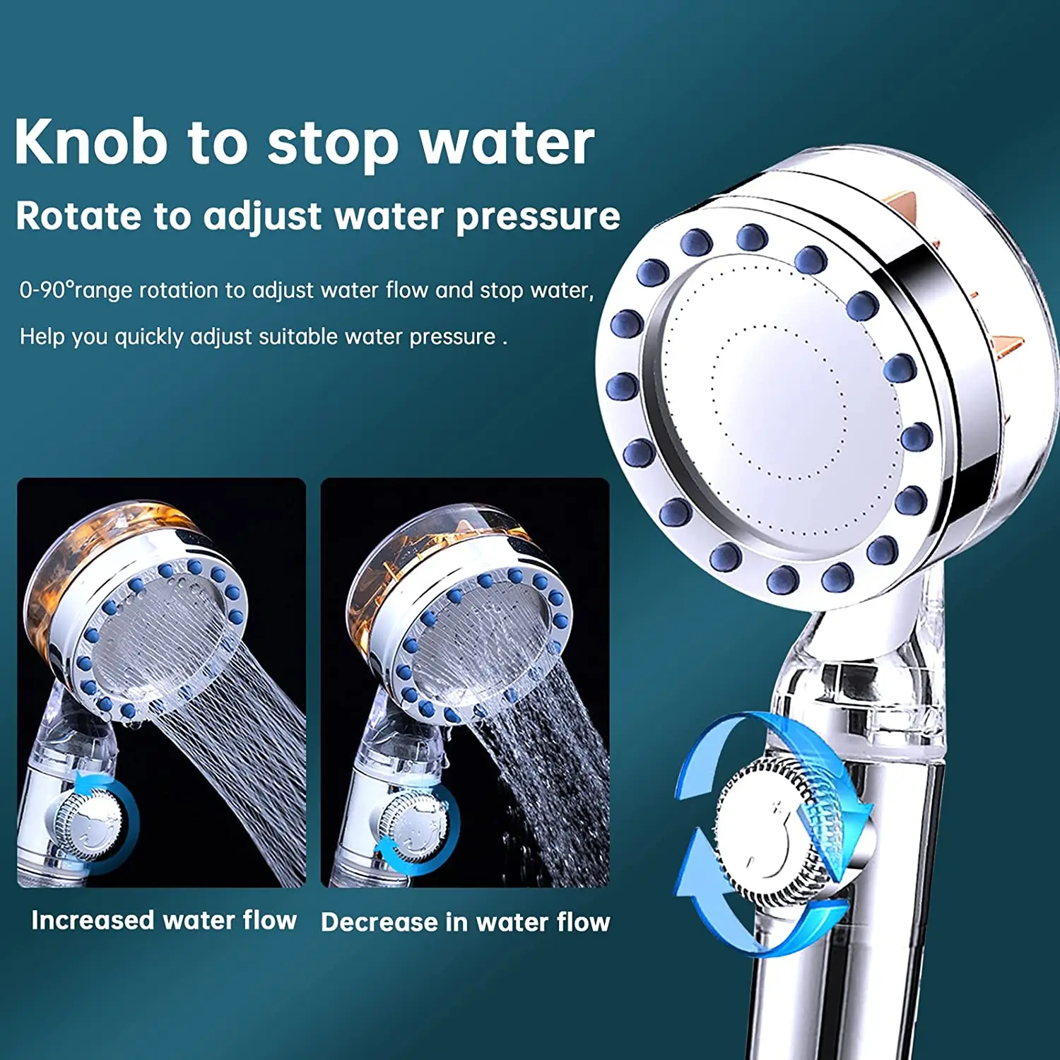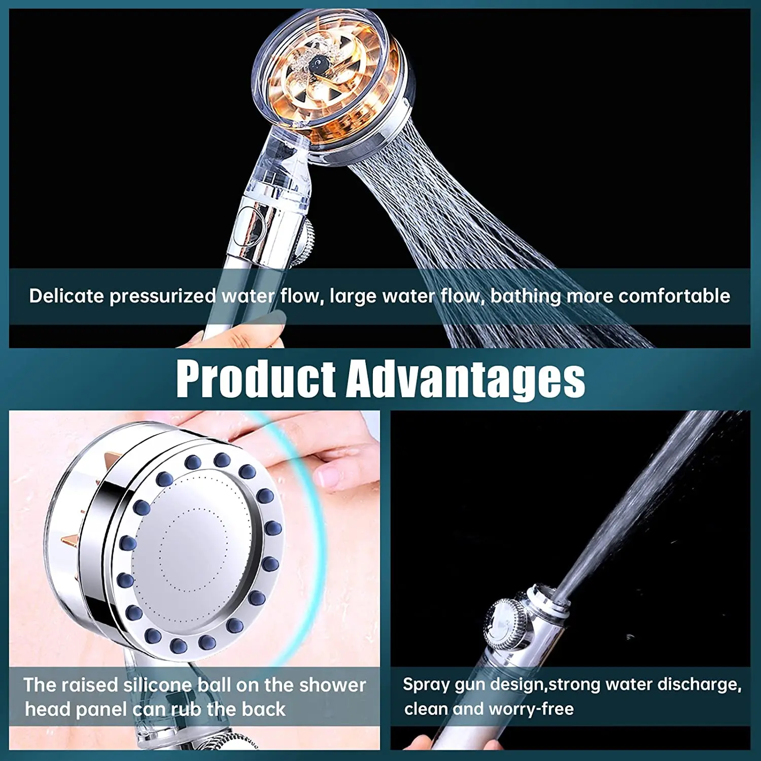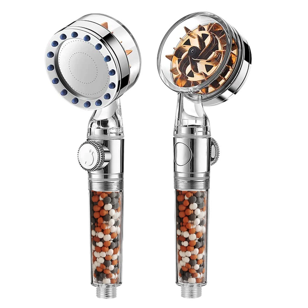 Experience the luxurious feel of this upgraded turbo shower head, designed to elevate your daily shower routine. Its modern round shape combines high-quality ABS plastic with a stainless steel panel, finished with multi-layer crystal chrome plating for a shiny, polished look. The built-in turbo fan dramatically enhances water pressure, delivering powerful, pressurized spray for a refreshing shower experience. Its water-saving feature reduces consumption by over 50%, making it eco-friendly and cost-efficient. The removable, filter system includes high-density cotton filters and precision filters to intercept sediments, impurities, and rust, ensuring clean, healthy water. Easy to install without tools, this shower head offers multiple spray modes and an adjustable pressure function, perfectly blending form and function for a rejuvenating shower experience.
