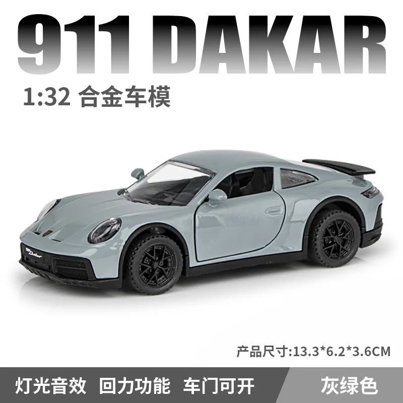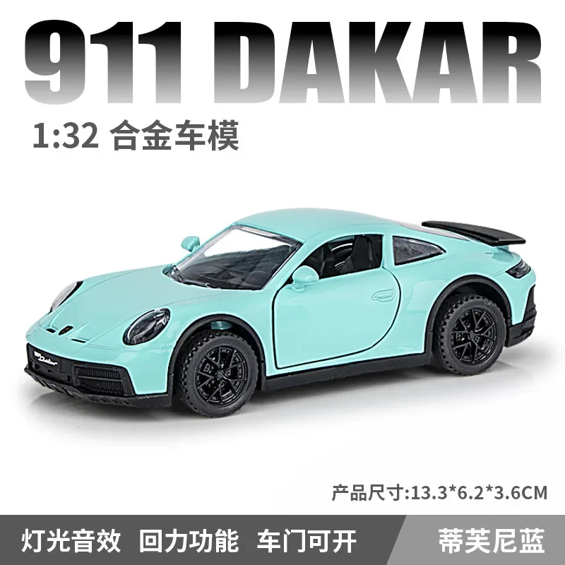 Experience the thrill of owning a meticulously crafted miniature sports car with this detailed diecast model of the Porsche 911 Dakar. With its vivid turquoise finish, sleek aerodynamic lines, and realistic features, it’s perfect for collectors or young enthusiasts eager to explore the iconic design of this legendary vehicle. Measuring approximately 13 cm long, 6 cm wide, and 3.5 cm high, this model captures every detail, from the smooth, rounded front contours with oval headlights and black grille, to the sporty rear spoiler. Featuring functional opening doors, sound, and light effects, you’ll feel as if you’re behind the wheel. Its durable build makes it a perfect gift for children over 4 or avid collectors.