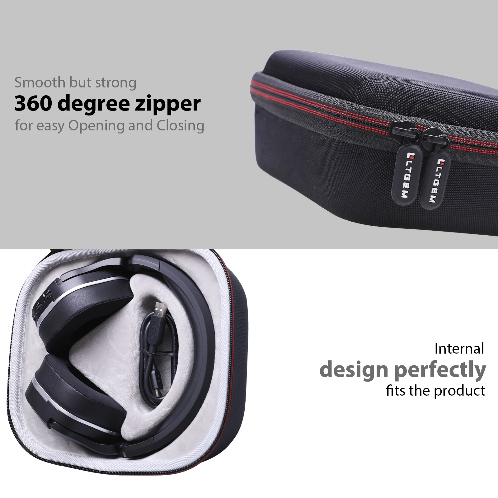 Imagine having your Turtle Beach Stealth 600, 700, 600 MAX, or 700 MAX Gen 2 wireless gaming headset securely stored in this stylish, durable case. Its semi-rigid EVA exterior offers reliable shock absorption and splash resistance, ensuring your valuable headset is not only safe from impacts but also protected against splashes. The minimalist black design with a subtle textured surface complements any gaming setup, while the white interior lining adds a touch of elegance. The red accent line around the zipper enhances the modern look. Whether you're traveling or storing it at home, this case offers peace of mind knowing your headset is snugly held in place, ready to go whenever you are.