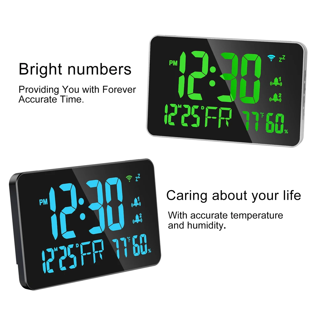 - Equipped with two programmable alarms, snooze functionality, and automatic time adjustments via WiFi, making your schedule more manageable and accurate in any setting.