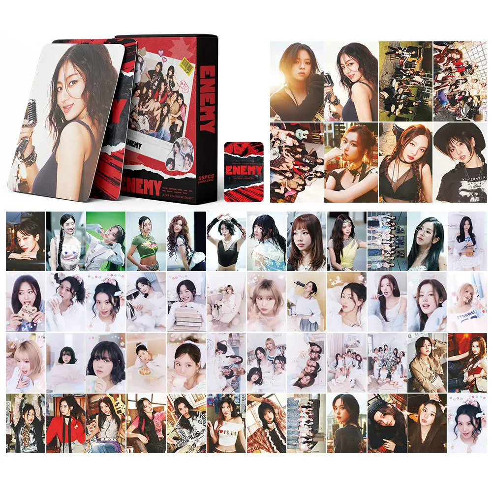 Imagine yourself holding this stunning set of 55 printed photocards from the “Twice Tenth” collection, designed for passionate fans like you. Each card features high-quality images of TWICE members, captured in lively poses with bold, vivid colors that instantly brighten any collection display. The playful themes of “10th,” “ENEMY,” “I GET Y laser,” and others add a youthful, energetic vibe to the cards, making each piece a unique highlight of your collection. These images showcase styled hair, expressive facial features, and fashionable outfits, all printed with precision and rich color saturation. Picture these cards carefully arranged on your shelf or in a display album, reflecting your love for TWICE and adding a personal touch of vibrant energy to your space.