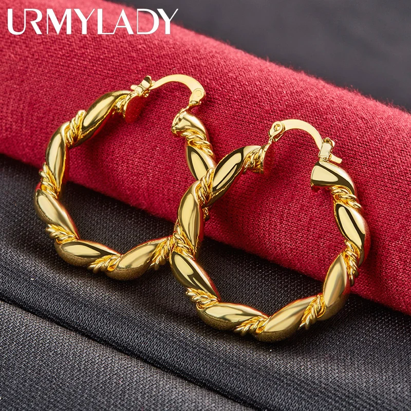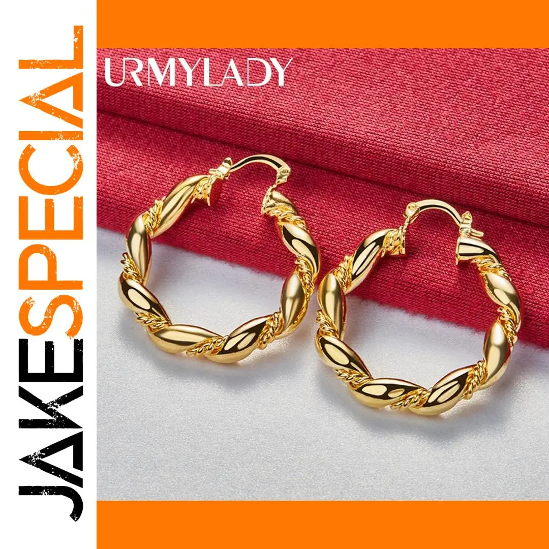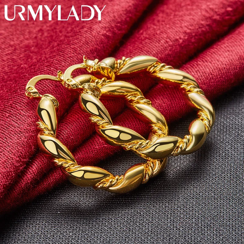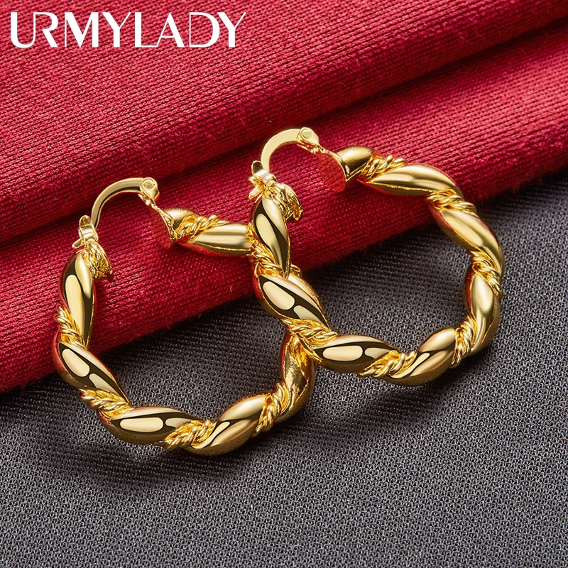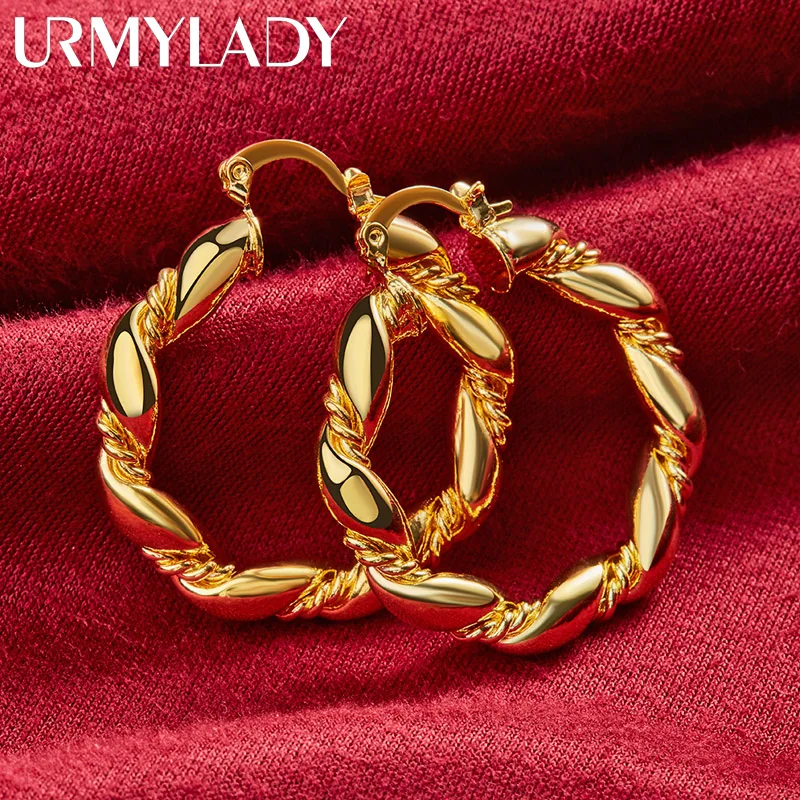 Elevate your style with these elegant round twist hoop earrings crafted from 925 sterling silver and finished in gold. Weighing approximately 6.50 grams, these bold, circular earrings feature a sleek, polished surface and a distinctive twisted design that adds movement and sophistication. Their classic shape and reflective shine make them suitable for weddings, engagements, parties, or everyday fashion. Designed for women, these earrings showcase a seamless latch closure for secure wear and are free of additional stones, emphasizing their minimalist yet luxurious aesthetic. Perfect for adding a timeless, modern touch to any outfit.