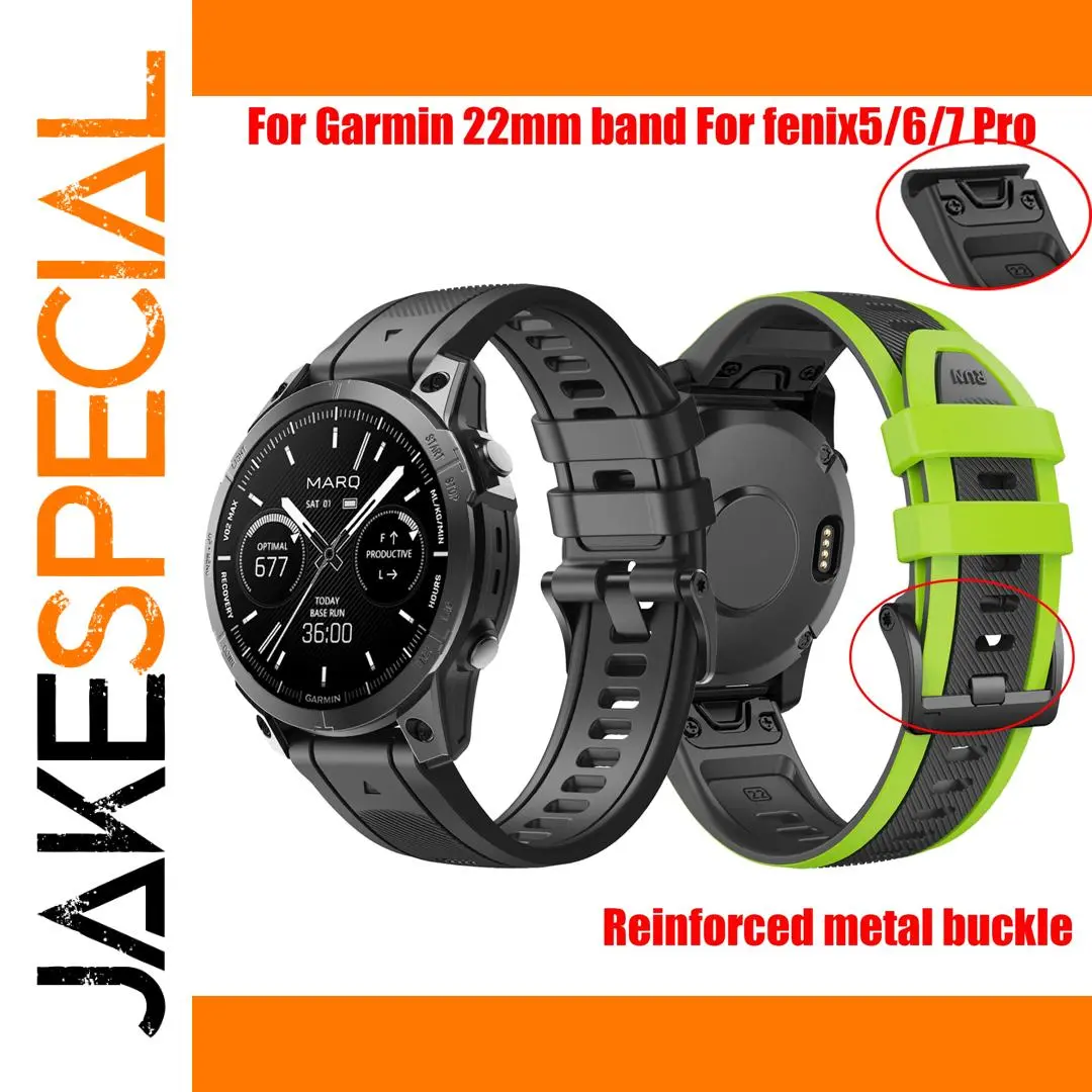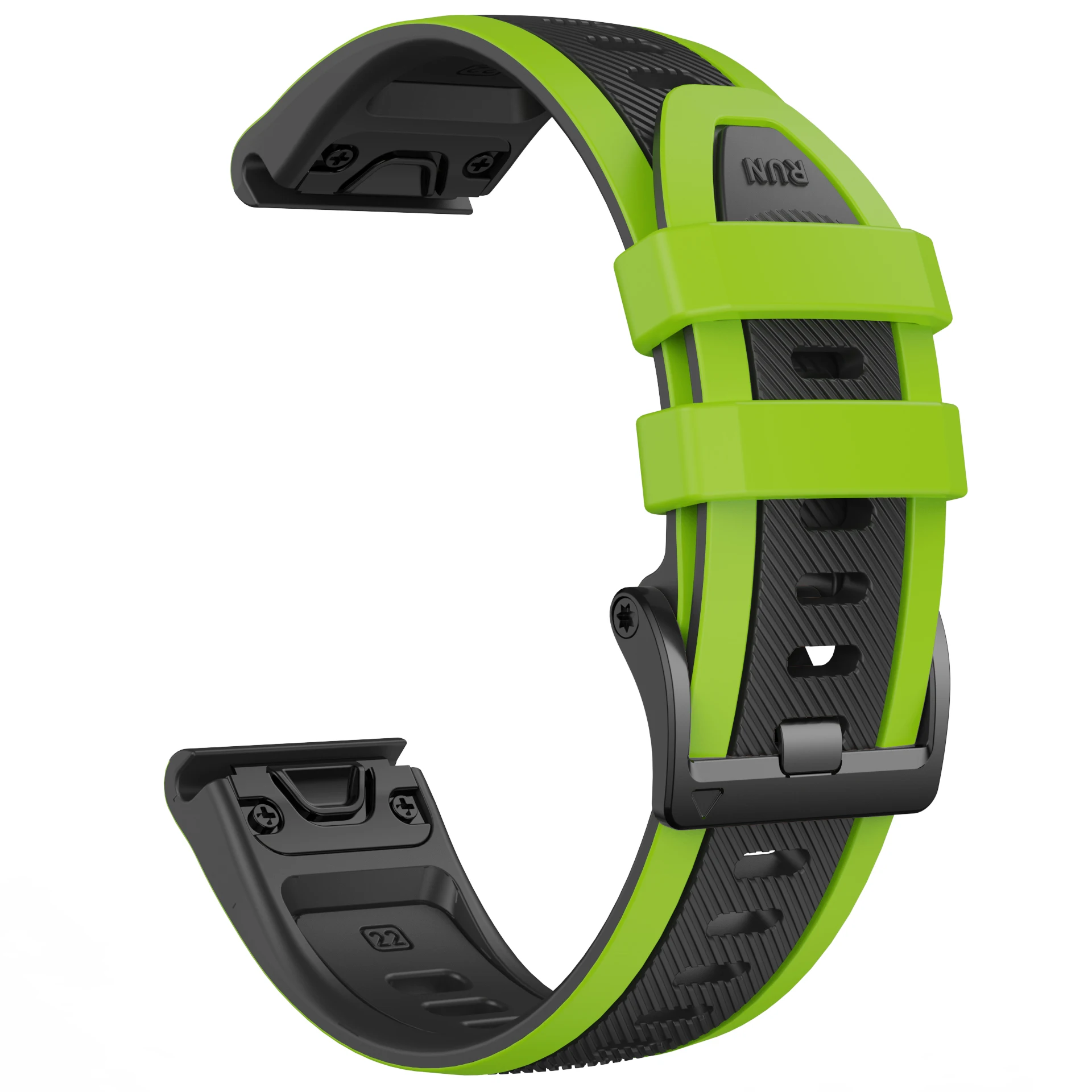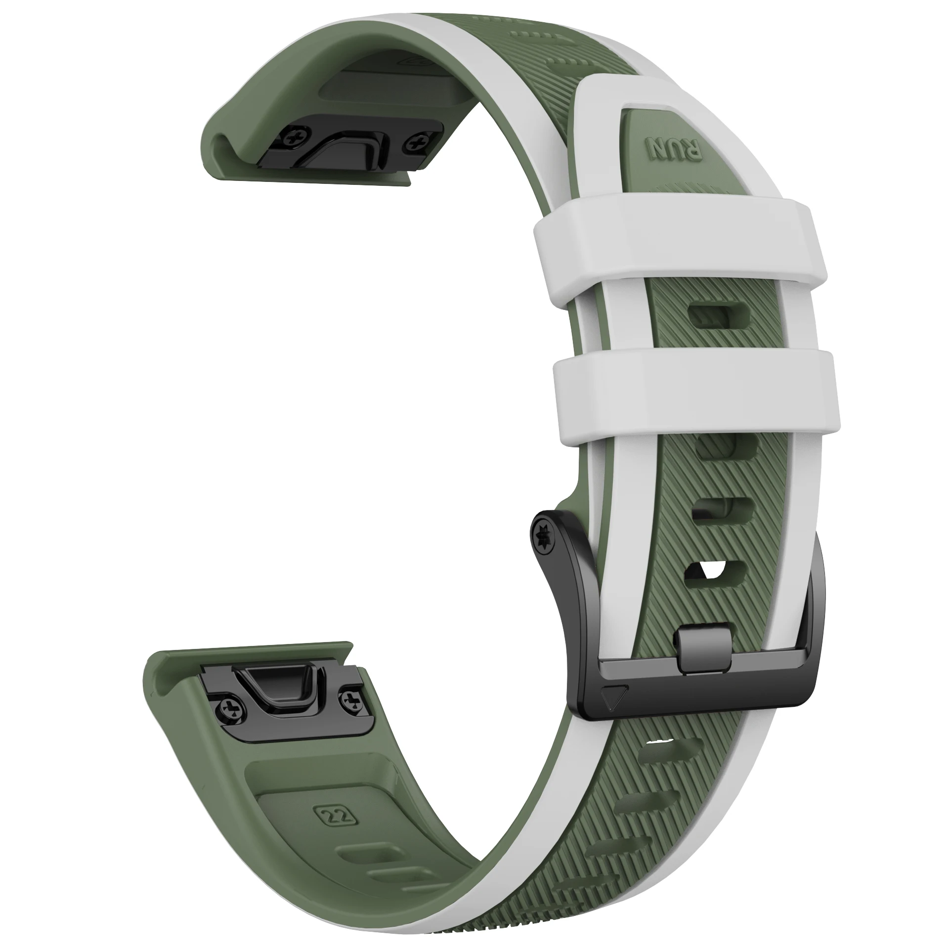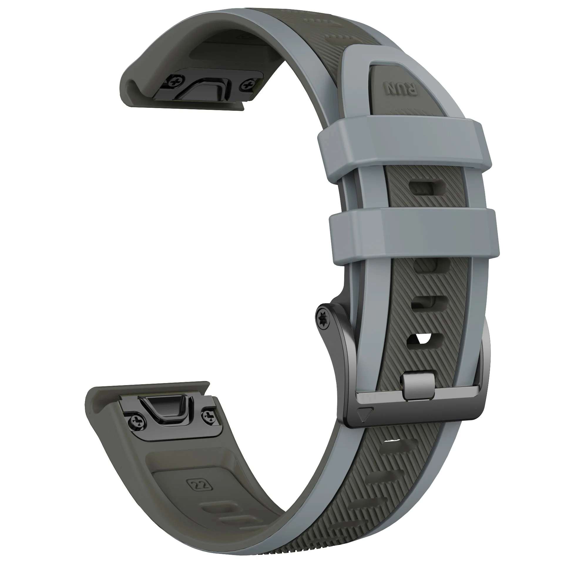 Elevate your Garmin watch experience with the Two Tone Silicone QuickFit 22mm Watch Band, designed specifically for models such as Garmin Epix Pro Gen 2 (47mm), Fenix 7 Pro, Quatix 6, and more. Crafted from durable silicone, this unisex band features a stylish two-tone design and a secure metal buckle for a comfortable fit. Its versatile compatibility includes popular Garmin models, ensuring the perfect match for your active lifestyle. With easy installation and a snug fit, you can seamlessly transition between workouts and daily wear, showcasing your unique style wherever you go. Upgrade your watch today!