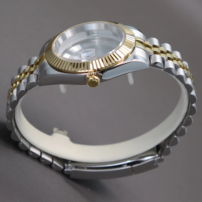 Elevate your collection with this high-quality stainless steel watch case, available in 36mm and 39mm diameters with case thicknesses of 11.8mm and 12.2mm. Crafted from solid 316L stainless steel, it features a durable sapphire crystal glass and accommodates a 28.5mm dial for a refined look. The watch supports various movements including NH35, NH36, NH34, NH38, 4R36, Miyota 8215, and Miyota 8205. With a 20mm strap width, waterproof up to 100 meters, and options for transparent or solid case backs, this case offers a perfect blend of elegance and functionality for Oyster-style Datejust watches in silver or gold tones.