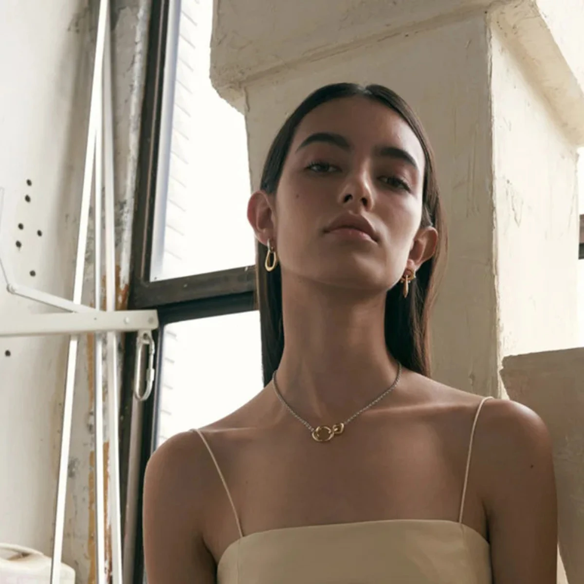 - Irregular, asymmetric gold hoop combined with a sleek silver hoop, creating a modern geometric look that is both bold and versatile.