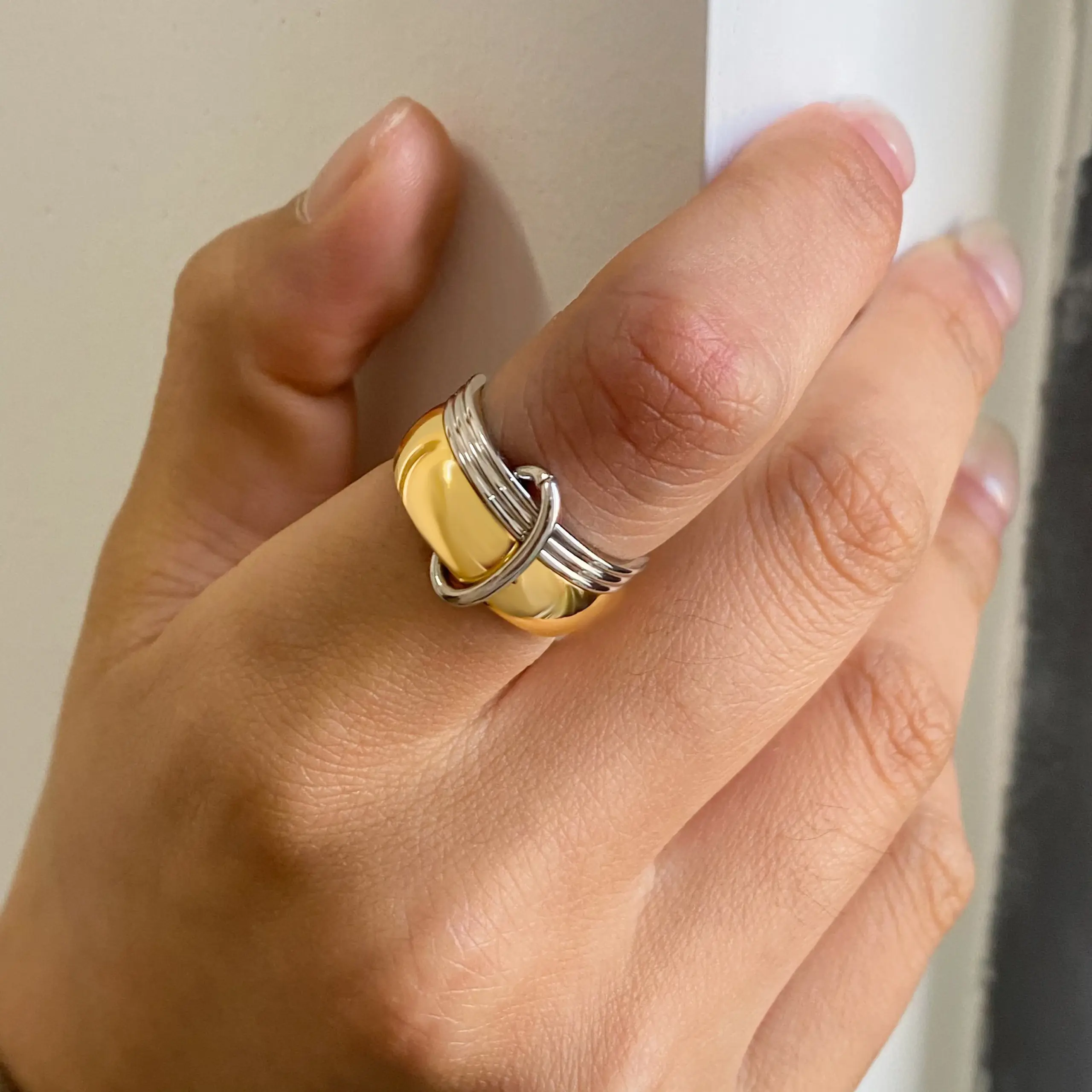 Don't miss the chance to add this timeless, trendy piece to your jewelry collection. Its versatile design and durable materials ensure you'll enjoy wearing it for years. Whether you're dressing up for a night out or accenting your everyday look, this ring offers both style and confidence. Elevate your personal style and express your unique taste with this beautiful two-tone stainless steel ring—an ideal choice for any fashion-savvy woman. Experience the perfect blend of sophistication and durability—order now and make it yours!