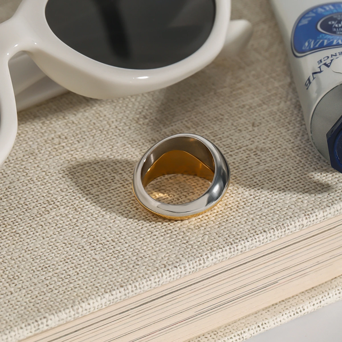 Experience the perfect blend of modern style and durability with this stunning two-tone stainless steel ring set. Designed for women who value both fashion and quality, these rings feature a sleek layered design with smooth, rounded silhouettes. The upper band boasts a shiny, reflective gold-tone finish, beautifully contrasted by a sleek silver-tone band below. Embedded within the gold section are two faceted white zircon gemstones that catch light with every movement, adding a sparkling touch of sophistication. Crafted from high-quality stainless steel resistant to tarnishing, these rings promise long-lasting shine and elegance. Their minimalist yet fashionable style makes them versatile enough for daily wear, office, or special events, elevating your look effortlessly.