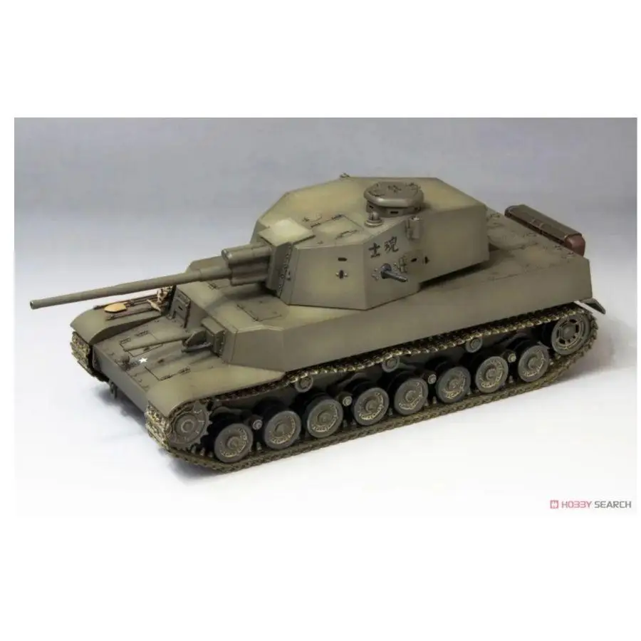 Step into history with this highly detailed Type 5 Chi-Ri tank model kit, representing the last medium tank developed by the Imperial Japanese Army in 1945. Measuring 242mm in length, 88mm in width, and 98mm in height, this scale model offers a realistic depiction of the formidable wartime vehicle. Comprising 722 precisely molded plastic parts, including 420 detailed tracks with a movable caterpillar system, it ensures an authentic assembly experience. The kit features a long 75mm main gun with an automatic loading device, complemented by a secondary 37mm gun at the front. Each component, from armor plating to hatches, has been meticulously reproduced to capture the rugged, weathered appearance of the original vehicle, perfect for collectors and model enthusiasts alike.