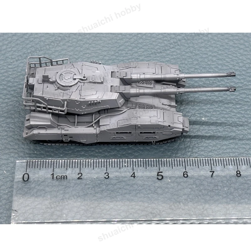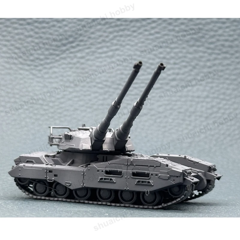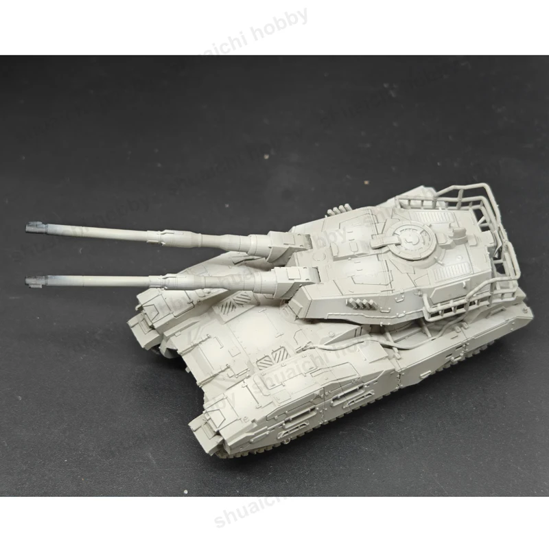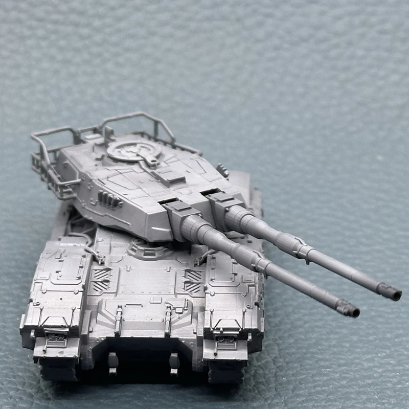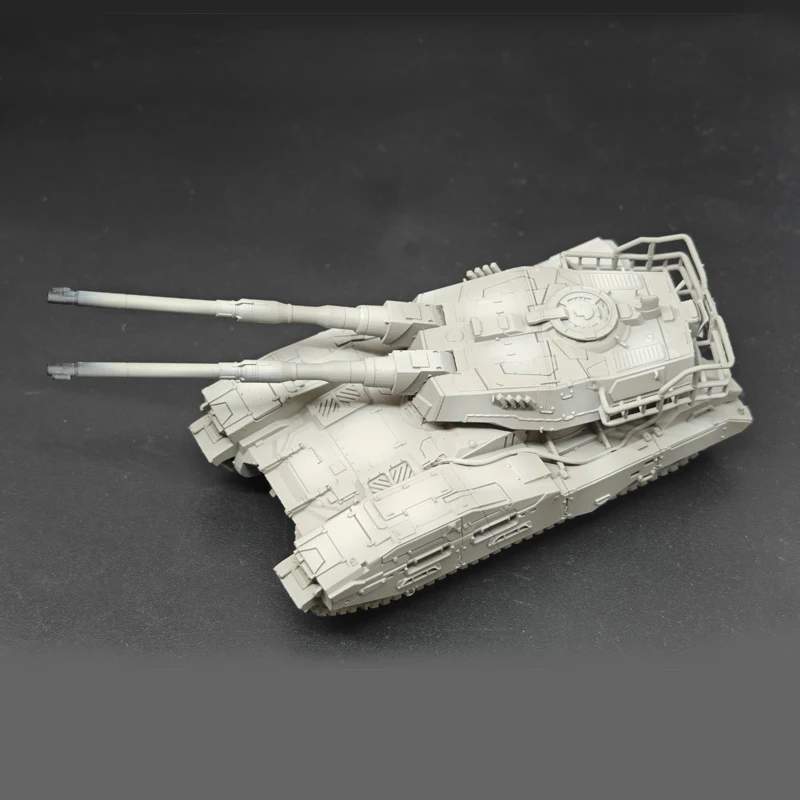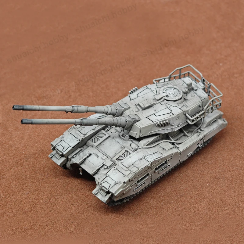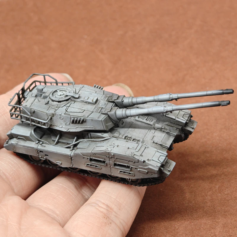 - Requires self-assembly; the included model showcases a rounded turret, detailed gun barrels with grooves, armor plating, and textured tracks.