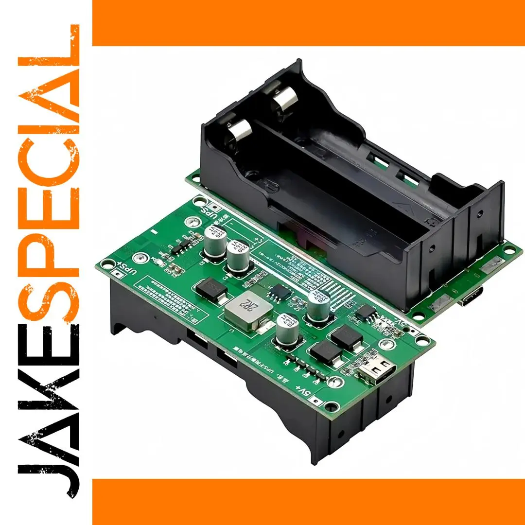 Experience reliable energy management with this sleek, green PCB module designed for seamless lithium battery charging, boost conversion, and UPS power backup. Compact and highly efficient, it features a modern look with surface-mounted components neatly arranged on the vibrant green circuit board. The black plastic battery holder creates a striking contrast while securely accommodating two 18650 cylindrical batteries. A white USB Type-C port adds a clean, contemporary touch for effortless input connection, complemented by a purple indicator LED for precise status updates. Bright red and green LEDs provide quick visual cues about charging and power status. Overall, it offers a professional, minimalistic aesthetic perfect for integrating into advanced electronic projects, ensuring both functionality and style.