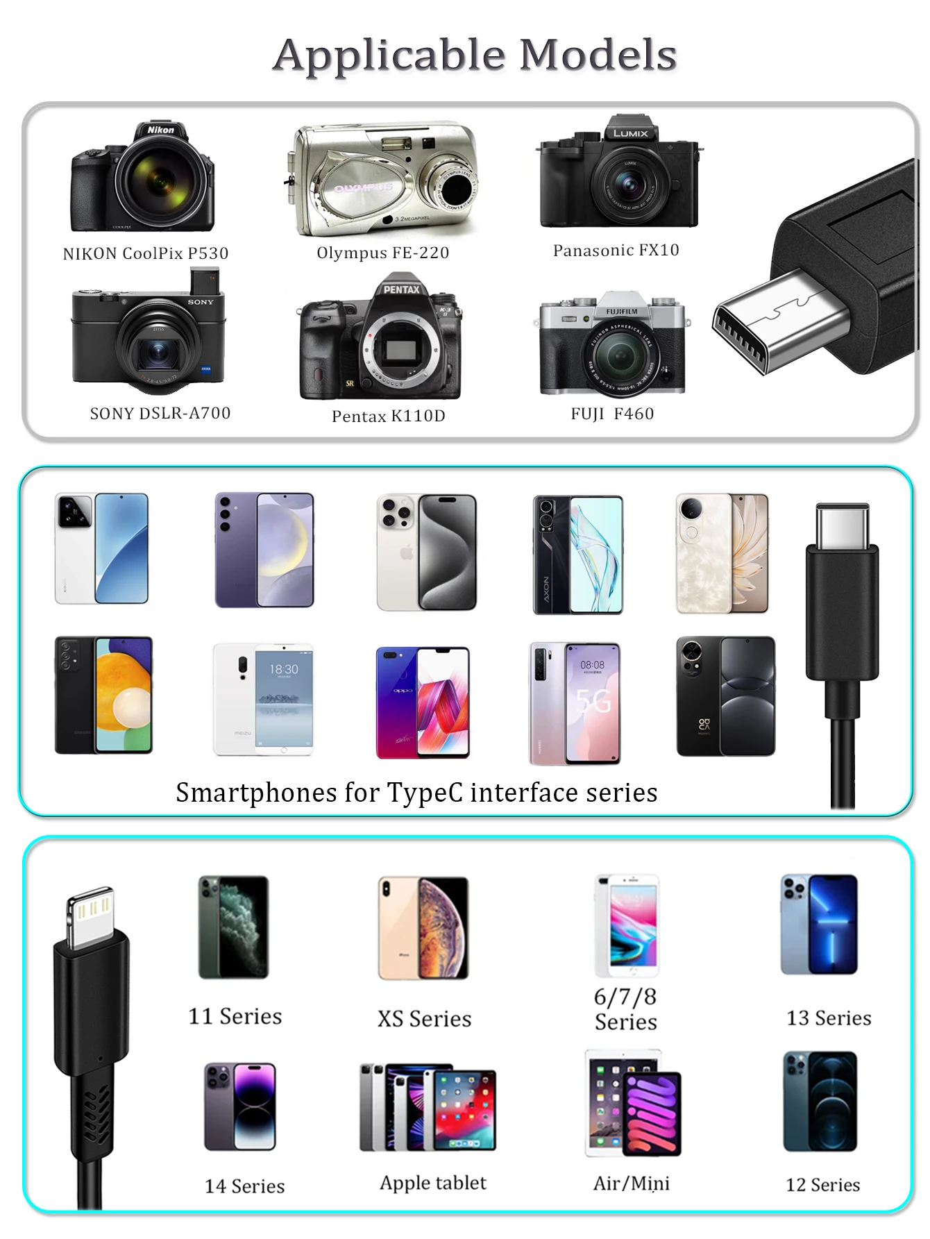 Invest in this Type-C to MINI 8P OTG cable and unlock a world of convenience in your photography efforts. Visualize how effortlessly you'll share stunning shots right from your camera to your phone, captivating your audience instantly. This cable is your essential tool in bridging the gap between your devices. Enjoy smooth data transfers today and enhance your photographic creativity now!