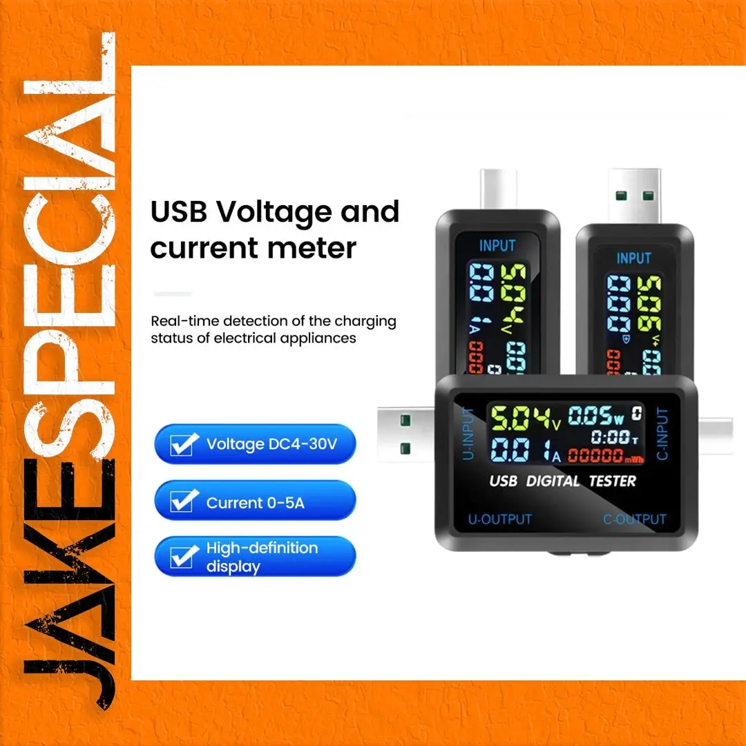 The Type-C USB Tester is an essential digital voltmeter and ammeter designed for measuring electrical parameters with precision. Featuring a current measurement range of 0-5A or 0-8A, a voltage range of DC 4.5 – 36V, and a power measurement capability of up to 150W, it also tracks capacity accumulation up to 99999mAh/mWh. Displaying data on an IPS true color digital LCD screen, it offers USB D+ and D- voltage ranges of 0 – 2.99V. Operating between -10 to 60°C with 10-80% humidity, its compact dimensions (USB: 77.6*27*11mm, Type-C: 73.6*27*11mm) make it both functional and user-friendly.