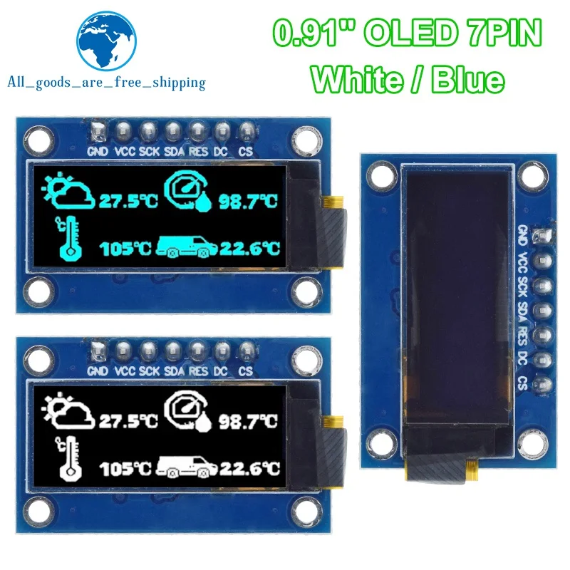 - High-resolution 128×64 pixel monochrome OLED display with a 0.91-inch diagonal, ideal for detailed graphics and text in compact form factors.