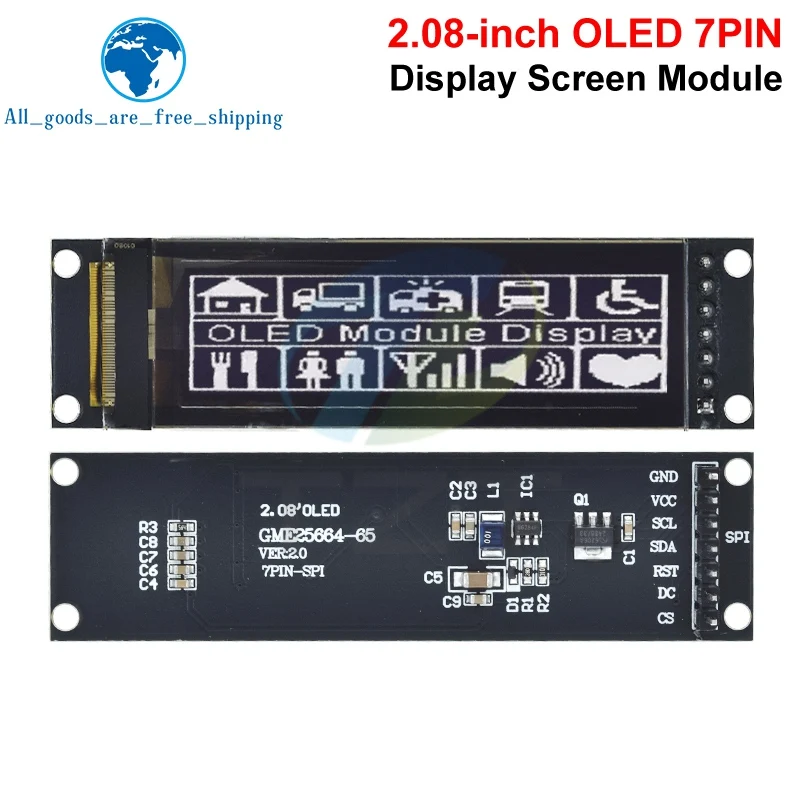 - This 2.08-inch OLED module has a resolution of 192 x 64 pixels with high contrast white graphics on a black background, perfect for clear graphical user interfaces in electronic projects.