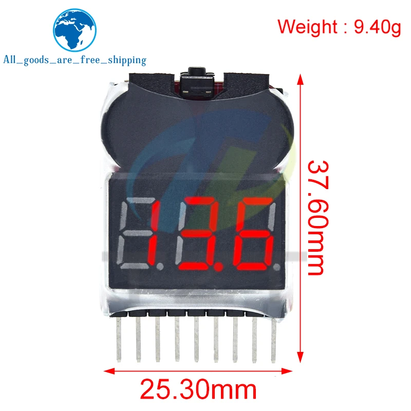 - Supports 1-8S Lipo, Li-ion, and Fe batteries, accurately measuring voltage ranges from 0V up to 13.6V per cell.