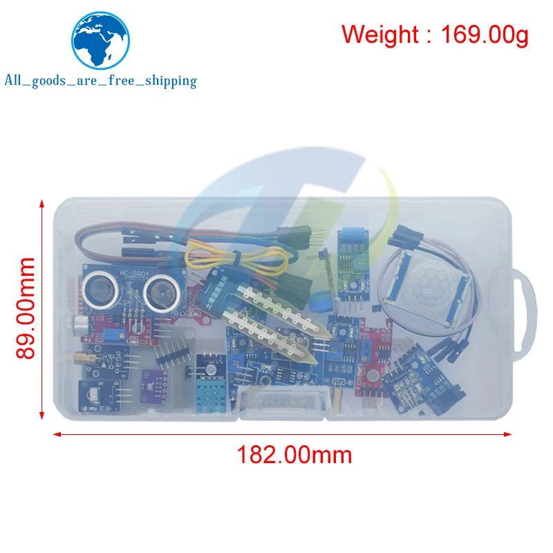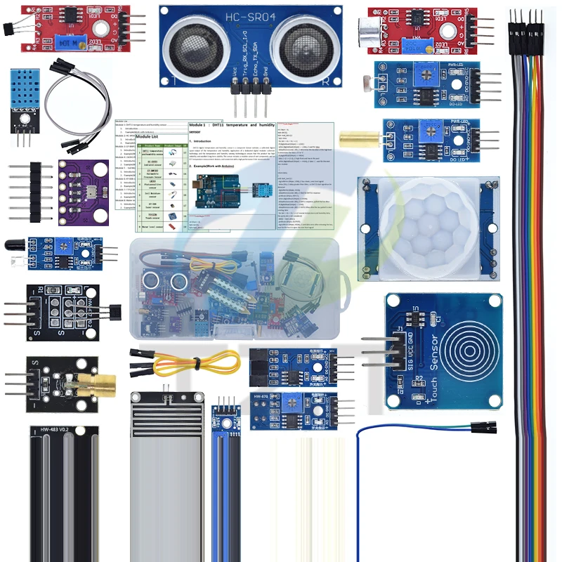 Enhance your Raspberry Pi IoT projects with this comprehensive TZT 22-in-1 Sensors Module Kit, designated as Model 1. Featuring 22 sensor modules, including ultrasonic, voltage, touch, and various breakout sensors, all housed in one or three colorful boxes, this kit offers a vibrant, well-organized collection of high-quality SMD components. Designed for beginners and enthusiasts alike, the kit provides precise, reliable sensors with visual appeal through bright red and deep blue circuit boards, circular transducers, and concentric patterns. Compatible with a wide range of IDEs and projects, this new, non-chemical hazardous set is perfect for hands-on learning, experimentation, and innovative IoT development.