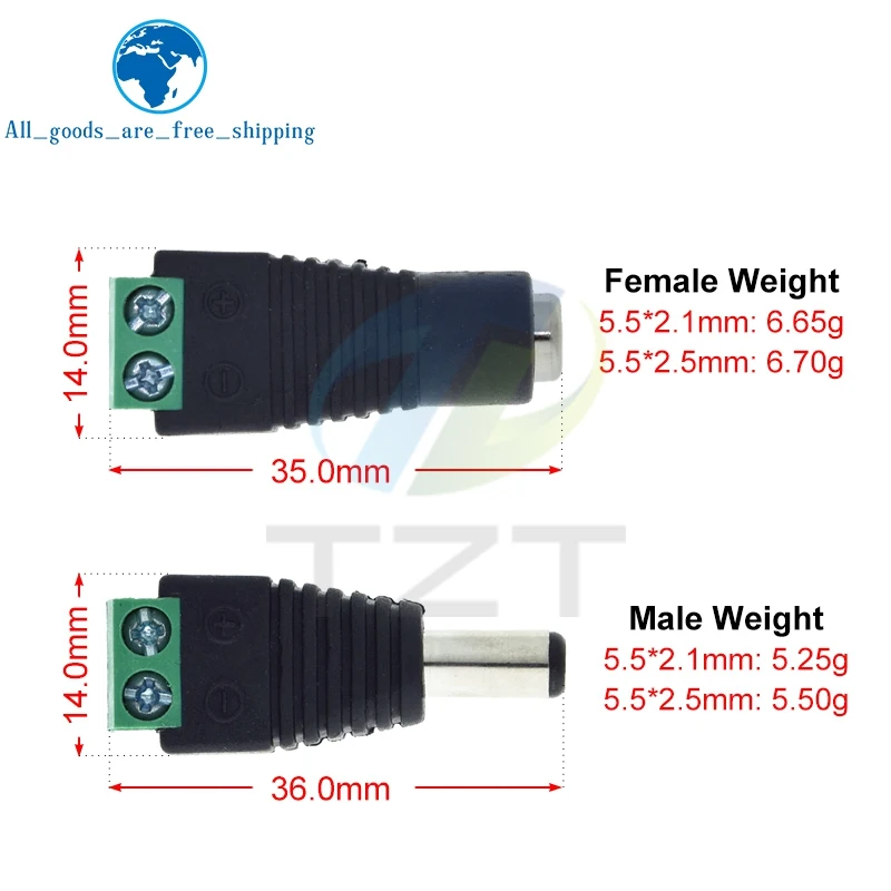 TZT 5.5×2.1mm/2.5mm DC Power Plug Adapter for LED and CCTV
