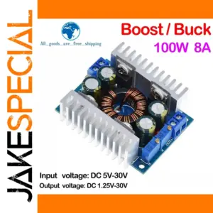 - Outputs adjustable voltage from 1.25V to 30V, supporting up to 8A of current for demanding applications.