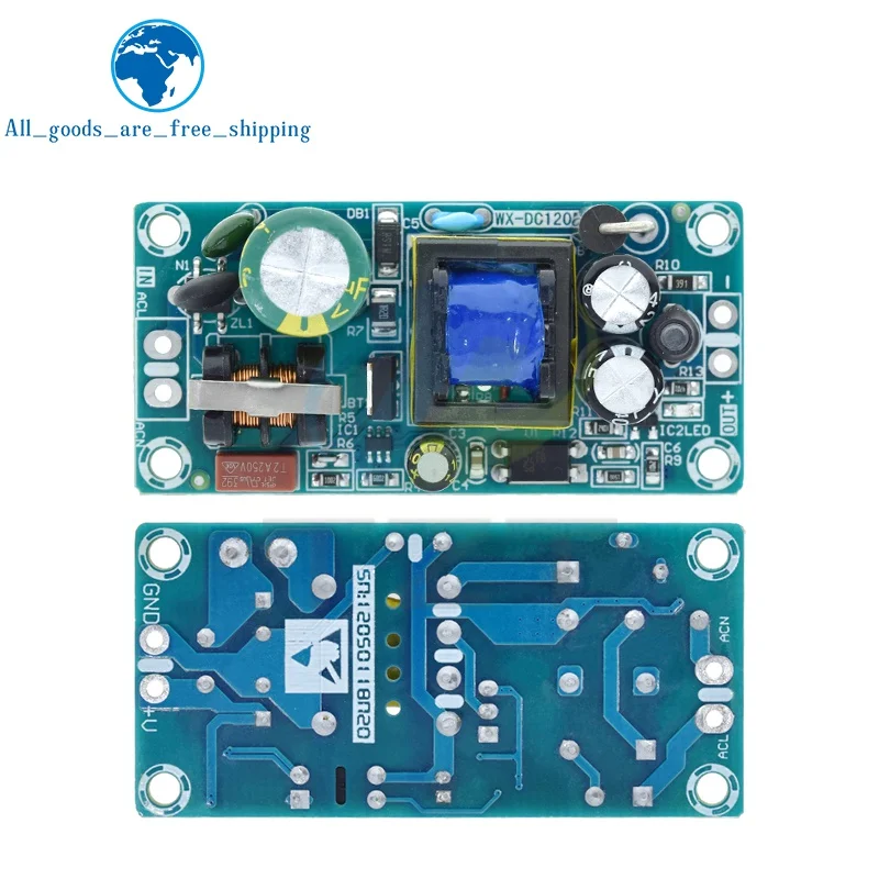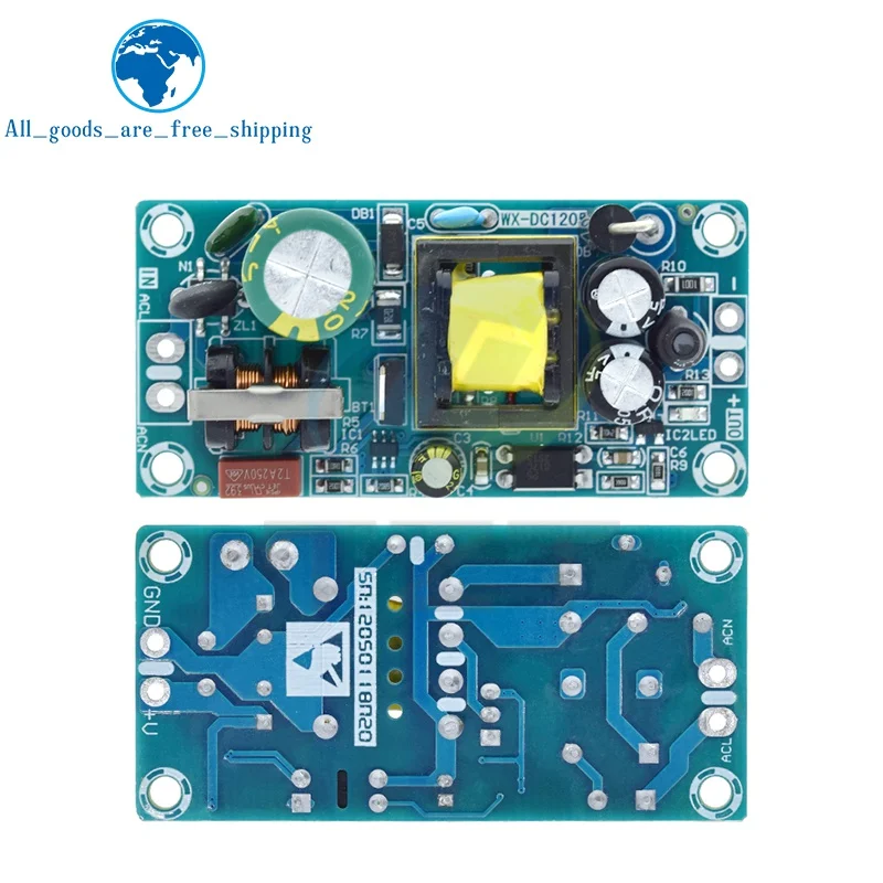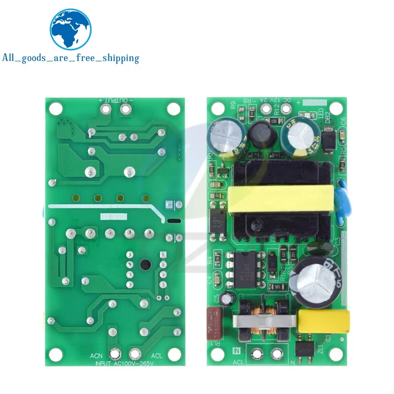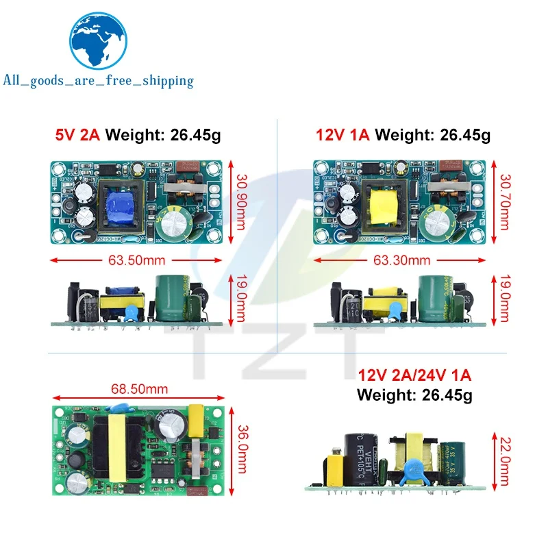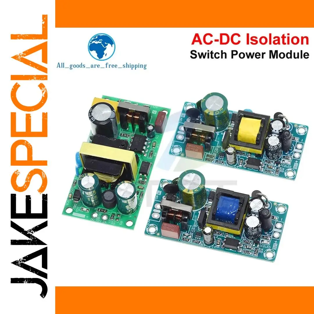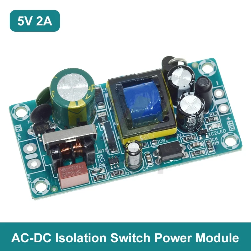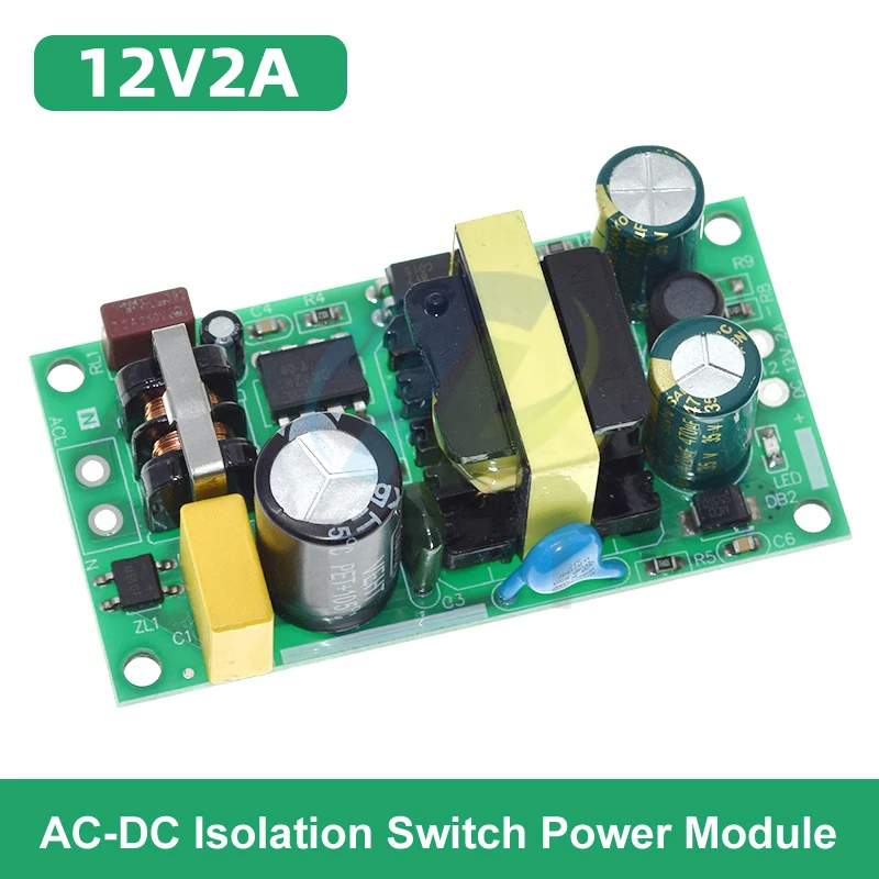 This versatile switching power supply module features a bare circuit board design with multiple voltage and current options: 5V at 2A (10W), 12V at 1A (12W), 12V at 2A (24W), and 24V at 1A (24W). Operating within an input voltage range of 85-264V AC, it is ideal for voltage regulation and power conversion applications. The module showcases a compact, industrial aesthetic with colorful PCBs—green and blue—with prominent yellow transformers and large electrolytic capacitors for robust performance. Suitable for replacement or repair projects, the product comes in packages of one or three units, ensuring reliable power supply solutions for your electronic setups.