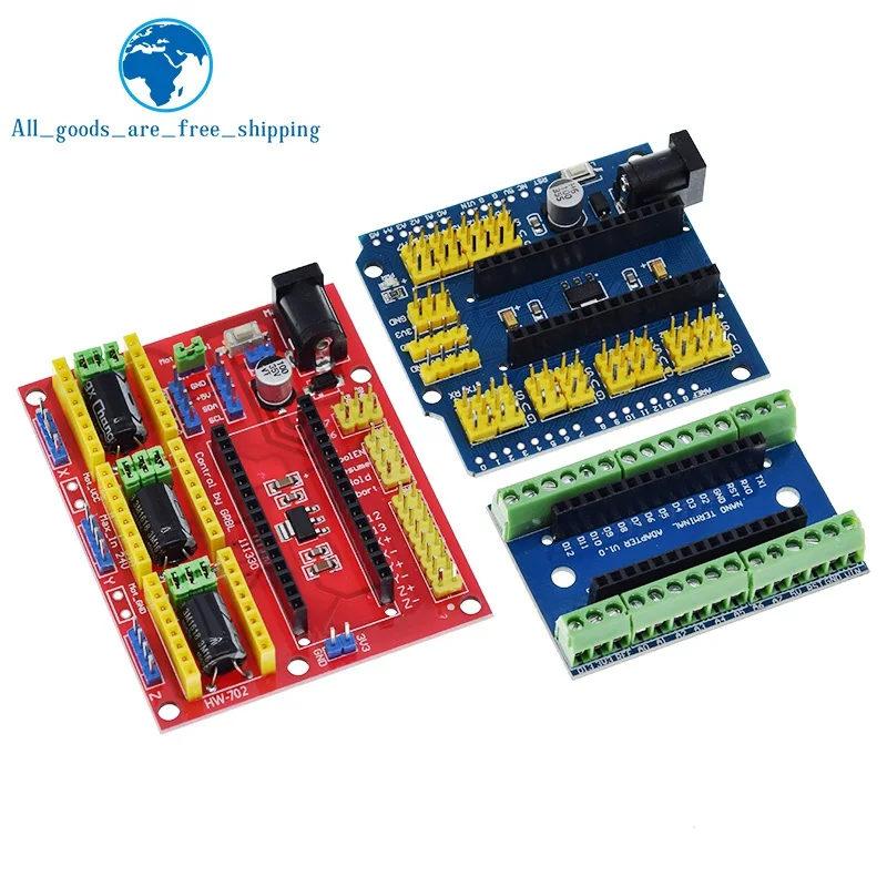 Enhance your ATMEGA328P Nano 3.0 projects with the TZT NANO V3.0 Controller Terminal Adapter Expansion Board, available in vibrant blue, red, and various USB welding types including TYPE-C, mini, and micro. This customizable IO shield features multiple color options, voltage regulation support, and a broad operating temperature range of -40°C to +85°C, making it ideal for electronic modules, switches, and sensors in embedded systems. Designed for versatility, the package includes options for 1 or 3 pieces, with models such as NANO IO Shield, CNC Shield V4, and DIY configurations, offering a reliable and organized solution for your advanced electronics projects.
